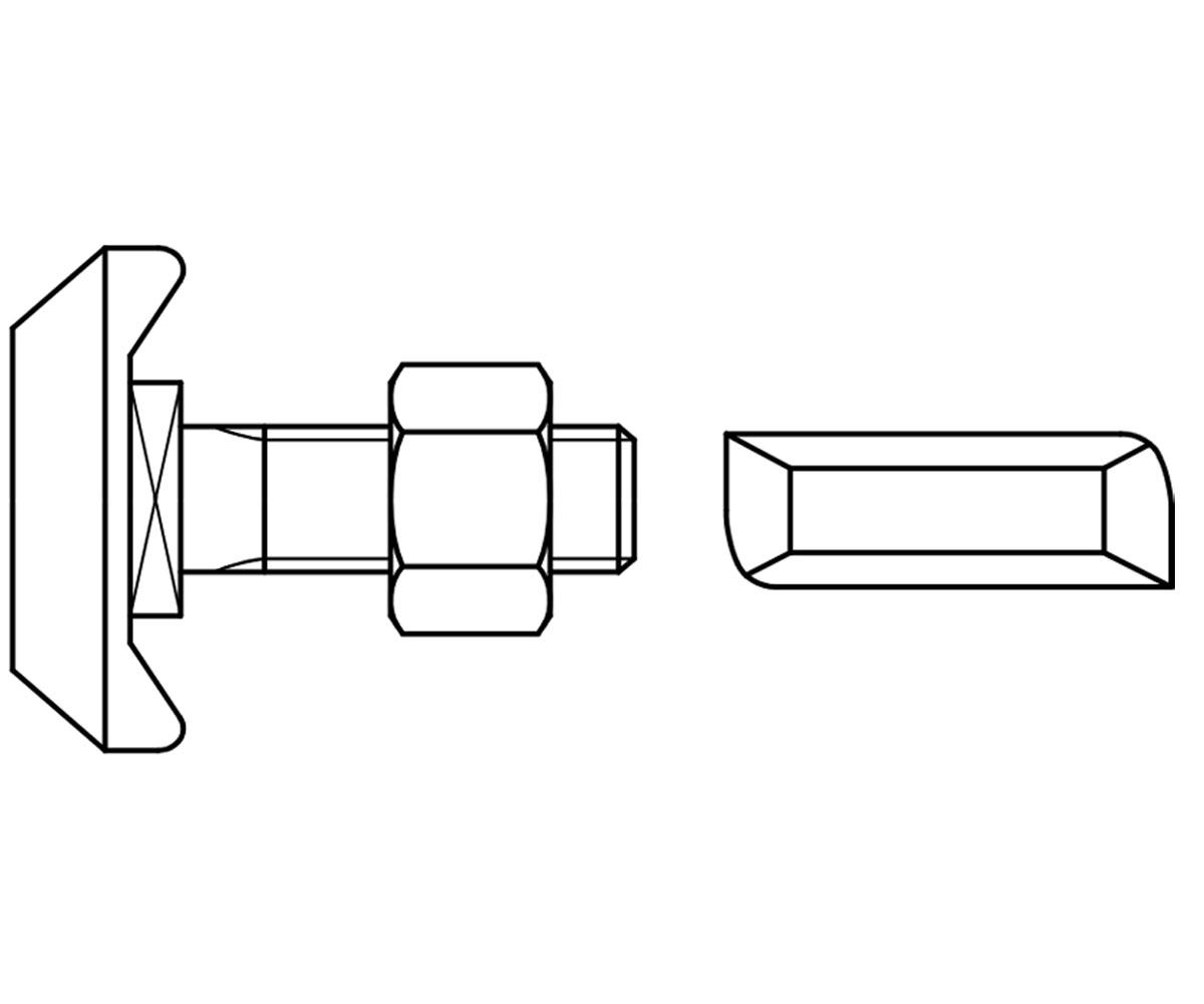 Hakenkopf-/Halfen-Schrauben - mit Sechskantmutter - Artikel 88972 für Profile 72/48, 72,49 Kopflänge: etwa 58 mm