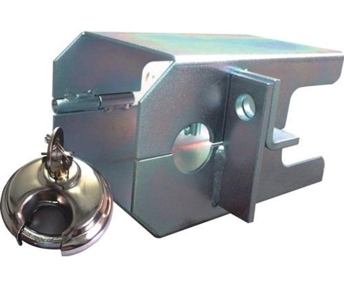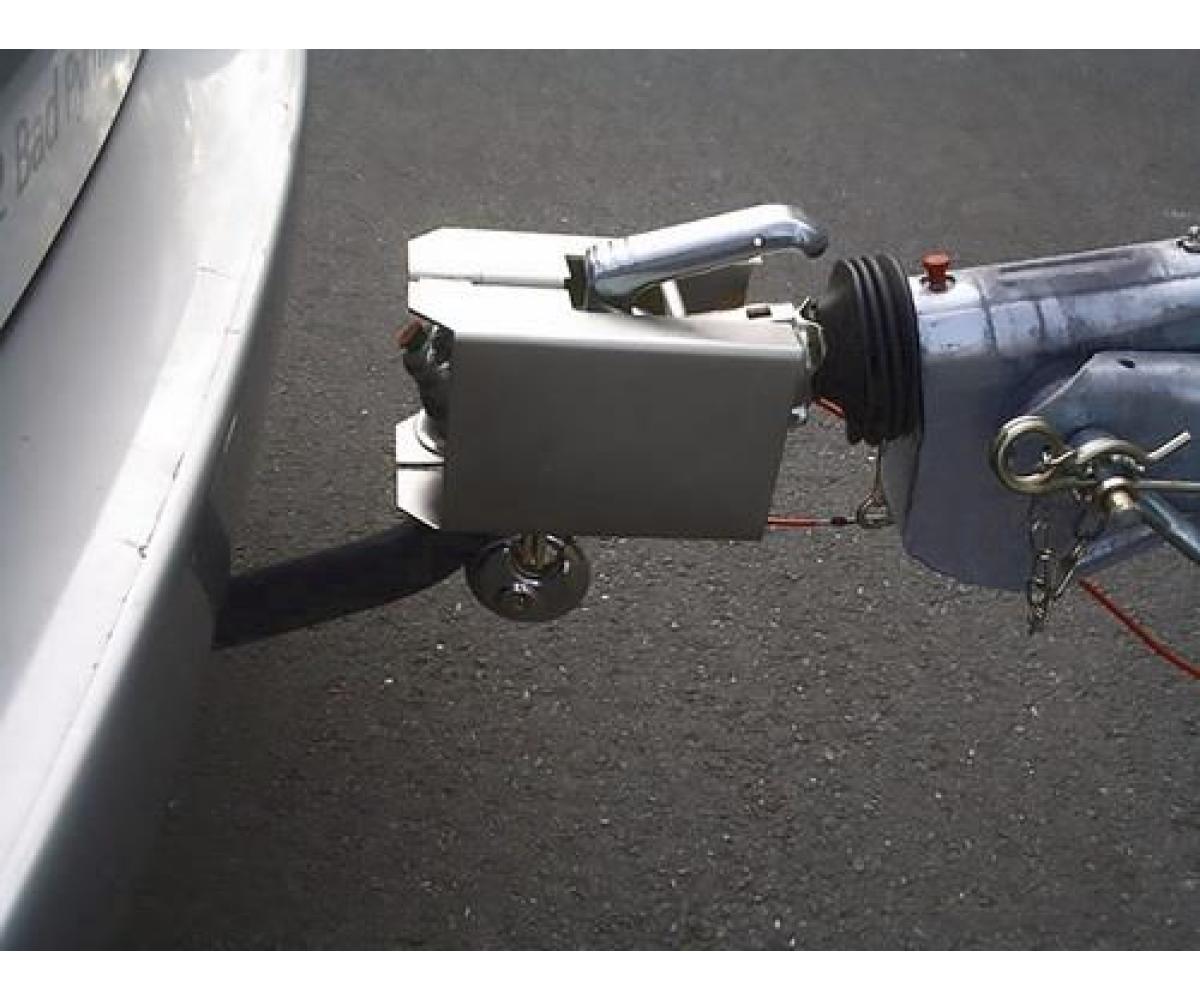 für Anhänger und Wohnwagen · aus Stahl verzinkt · passend für alle gängigen Zugkugel-Kupplungen · für Fahr- und Standbetrieb geeignet · inklusive Rundschloss mit 2 Schlüsseln · angekuppelt verschließbar und diebstahlgesichert · abgeschrägte Ecken als Stoßstangenschutz, ermöglicht das Einlenken ohne Einschränkung