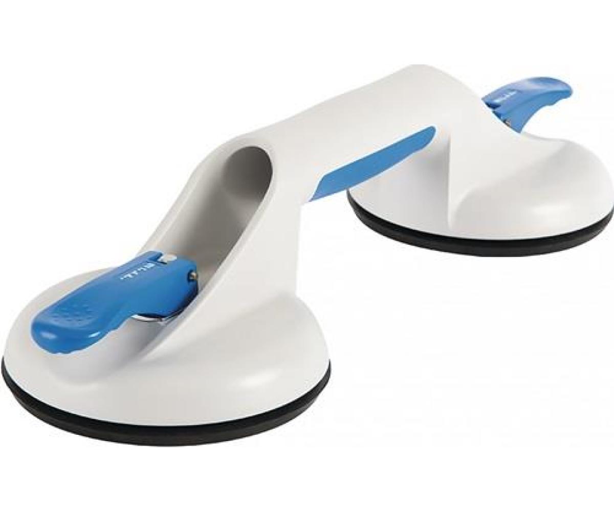 2-Kopf-Kunststoff-Körper mit Längsgriff · Vakuumaufbau durch Umlegen der Kipphebel · geeignet für alle Materialien mit glatten und gasdichten Oberflächen wie Glas, Kunststoffplatten, Blech, beschichtetes Holz, Marmor, Fliesen etc. · Gummischeiben auswechselbar · Tragrichtung: parallel