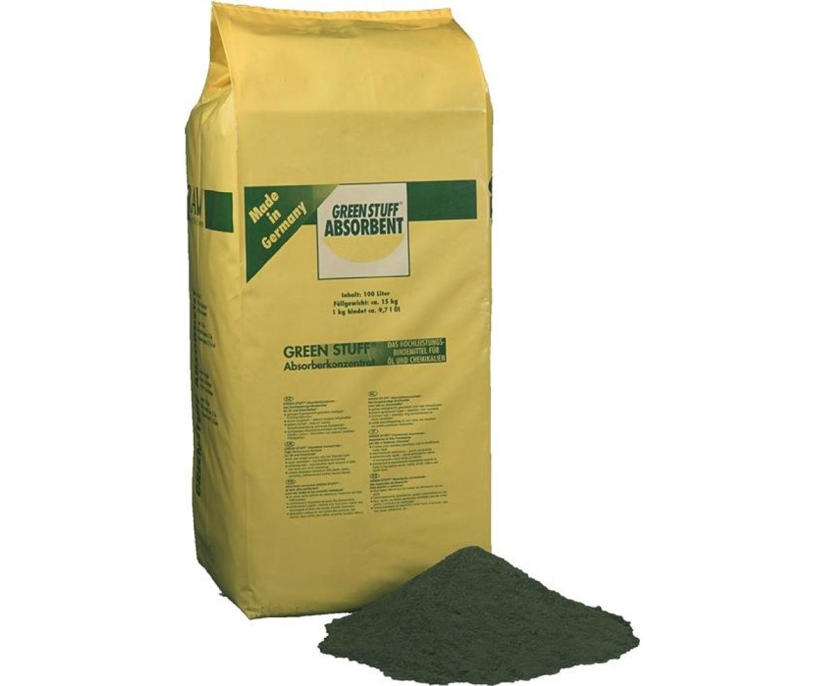 Weitere technische Eigenschaften · Material: hydrophiles Phenolharz · Saugleistung max.: 8,4 kg/1 kg · Gebinde: Sack · Absorberkonzentrat Green · Stuff® Inh.100l RAW ·