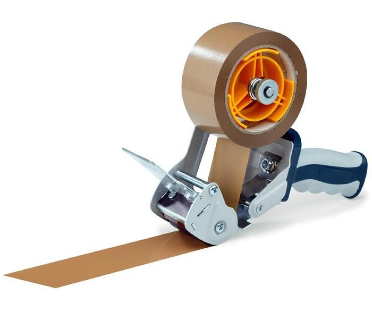 Für 50 mm Rollenbreite · 66 · 132 und 180 lfm.-Rollen und 76 mm Rollenkern Sehr robuster Metallabroller mit Sicherheitszahnmesser Statikstreifen hält das Klebeband immer an der Andrückrolle Mit Softhandgriff Mit regelbarer Abrollbremse Gewicht: ca. 630 g
