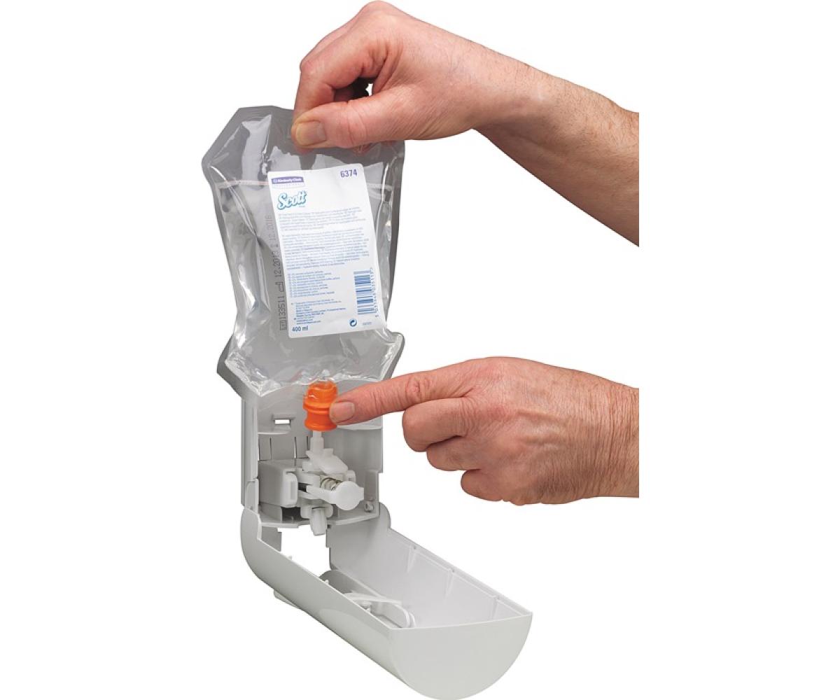 Reiniger für Toilettensitze und andere Oberflächen · leicht zu pflegen · hygienische Ergänzung zu Toilettensitzauflagen · kosteneffektive Lösung, ideal für einen sauberen und hygienischen Waschraum · kompakte und hygienische Nachfüllung aus versiegelter Verpackung · verfügbar als klares Reinigungsspray in stabilen, hygienisch verschlossenen 0,4-l-Beuteln · einfach und schnell zu installieren · mit bis zu 2000 Dosierungen pro Beutel · nach dem Entfernen der Pumpe ist der Beutel recyclefähig