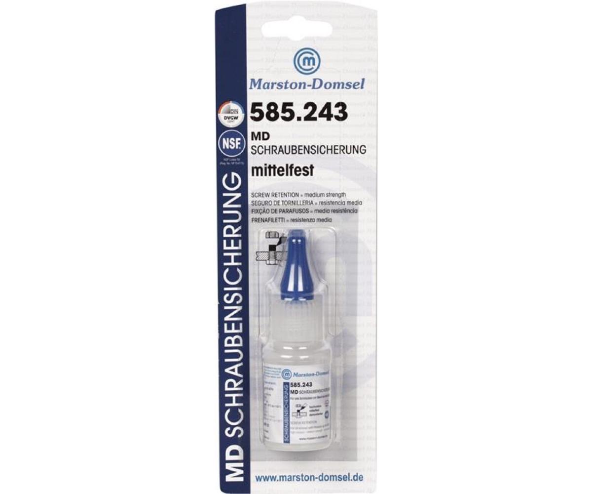 Weitere technische Eigenschaften · Losbrechmoment: 17-22Nm · Farbe: dunkelblau · Zulassung: S6 · Spaltüberbrückung max.: 0,25mm · Schraubensicherung · 585.243 20g mf.hv.blau S6 · Flasche MARSTON ·