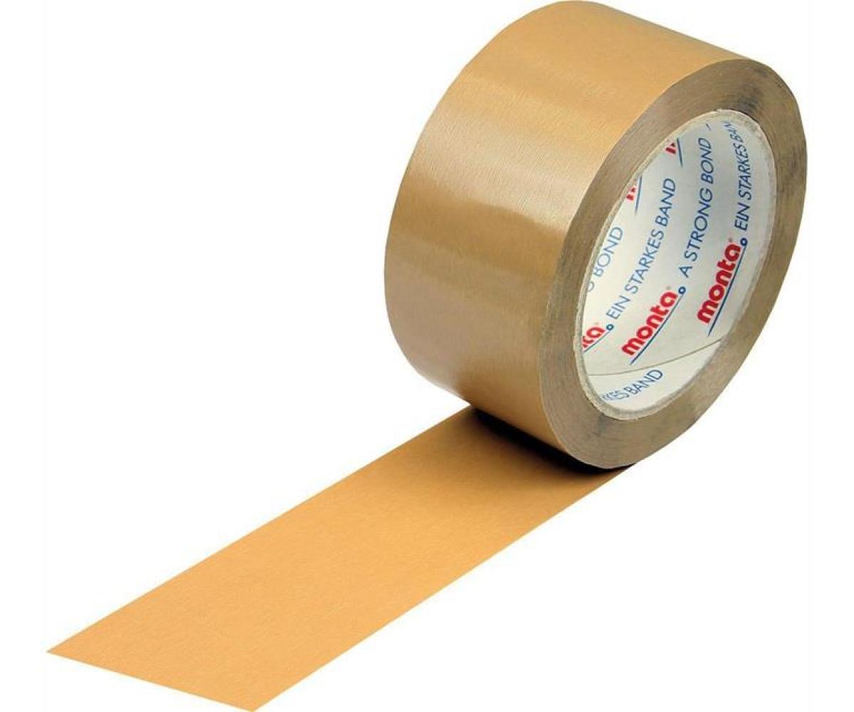 Weitere technische Eigenschaften · Trägerart: pvc · Klebmasse: naturkautschuk · Breite innen: 50mm · Gewicht VE: 8,82kg · Länge innen: 66m · Material: PVC · Stärke: 54µ · Klebeband monta 201 Breit · e 50mm Länge 66m Stärke 5 · 4µ PVC braun leise TRANSP ·