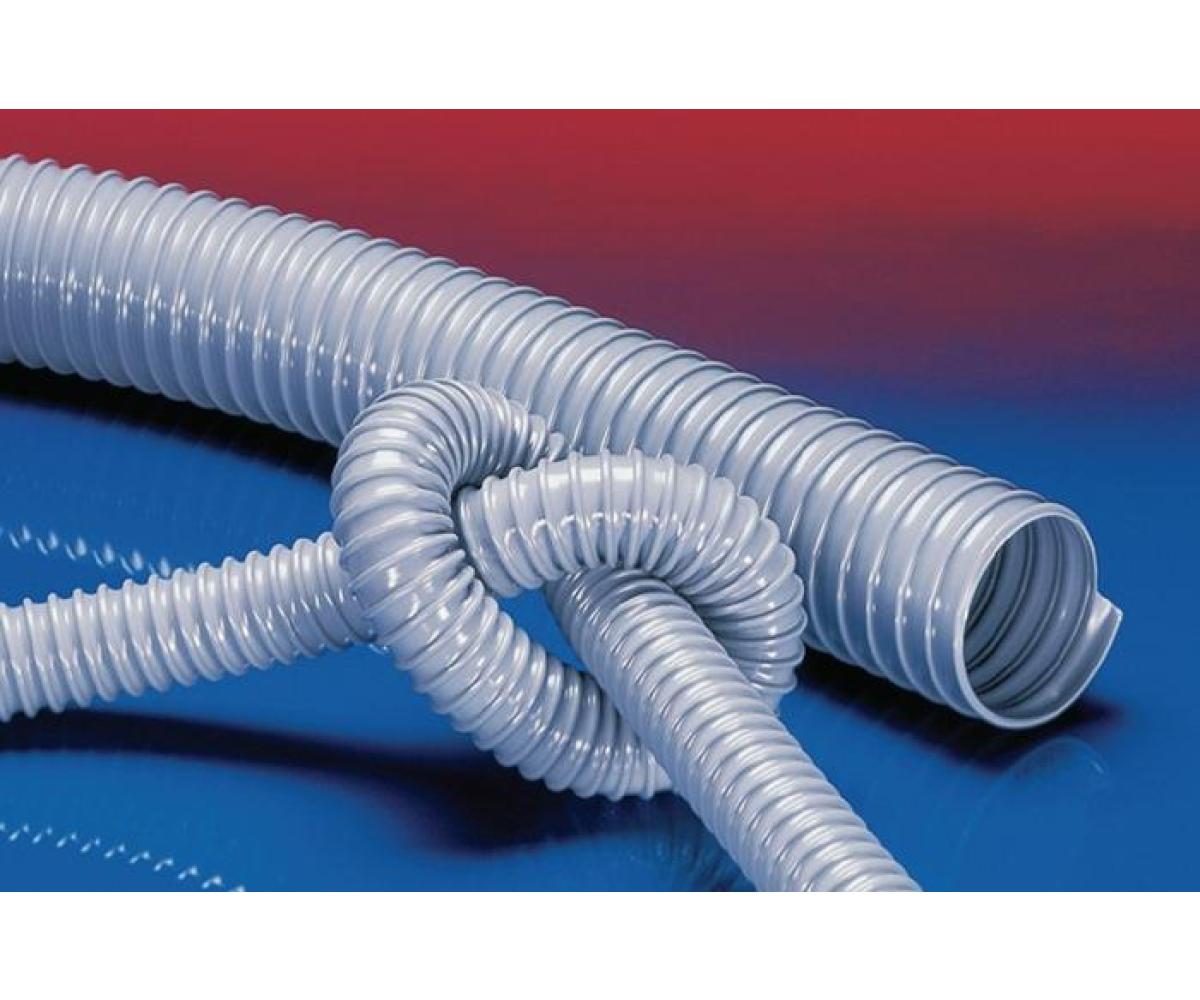 Anwendungen: flexibler Schlauch für Gase und für Stäube, Pulver, Fasern, Absauganlage, Entstaubungsanlage, Filteranlage, Ölnebelabsaugung, Galvanik Absaugung, Chemieindustrie: Chemiedämpfe, Gaspendelschlauch an Verladearm, Farbdämpfe, Farbnebelabsaugung, Heizschlauch: Außenschlauch als Schutzschlauch Eigenschaften: mittelschwere Ausführung, gute Laugen- und Säurenbeständigkeit, gute Chemikalienbeständigkeit, phthalatfrei, RoHS konform, schwerentflammbar nach: UL94-HB RoHS konform, REACH gemäß --> Technik / Technische Informationen / REACH Konstruktion: 1. in der Wandung fest eingegossener Federstahldraht, 2. Wandung: hochwertiges Weich-PVC, 3. Wandstärke ca. 0,9 mm Temperaturbereich: -20 bis +70 ºC (kurzz. +80 °C) Liefervarianten: weitere Ausführungen, Abmessungen und Längen auf Anfrage lieferbar