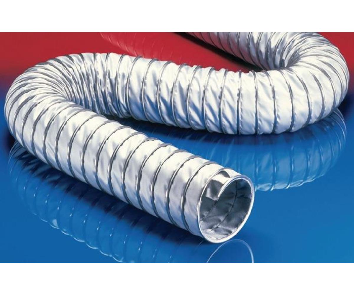 Anwendungen: flexibler Schlauch für heiße und kalte Gase, Abgasabsaugung, Absaugung von Motorabgasen: Abgasschlauchaufroller, Saugschlitzkanäle, Überflur-/ Unterflurabsauganlagen, Motorenprüfstände, Abgasmessung, Hochtemperaturabsaugung: Öfen, Gießereien, Hochöfen, Schmelzen, Keramikindustrie, Glasindustrie, Stahlwerke, Aluminiumhütten, Faltenbalg, Kompensator Eigenschaften: Scheuerschutz durch äußeres Klemmprofil, zugfeste Verklemmung der Wandung im Klemmprofil, isolierend, extrem hitzebeständig, RoHS konform Konstruktion: 1. Klemmprofil-Stützwendel: komplett Edelstahl (INOX), 2. mehrlagige Schlauchwandung, Wandung: innen mit Edelstahldrähten armiertes und spezialbeschichtetes Glasgewebe, Thermo-Isolationsgewebe, außen spezialbeschichtetes Glasgewebe, 3. spezielle Thermo-Isolationsschicht Temperaturbereich: -60°C bis 900°C, kurzzeitig bis 1100°C Liefervarianten: weitere Ausführungen, Abmessungen und Längen auf Anfrage lieferbar