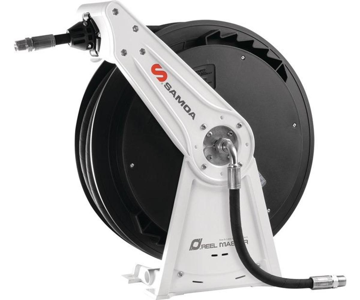 kompakte Maße, geringes Gewicht, perfekte Konstruktion, leichte Wartung · reibungsarme Drehlager für Super-Leichtlauf · Drehgelenk mit hohem Durchfluss für maximale Förderleistung · kein „Schwanken” des Aufrollers, da die Spindel auf zwei Kugellager montiert ist · auf 6 Rollen gelagerter Auszug für Leichtgängigkeit in alle Richtungen · Doppelsperrklinke sorgt für ein genaues Arretieren · optimale Wand-, Decken-, Boden- oder Tankmontage · für den Einsatz in Werkstätten, großen Fuhrparks, Service-Shops und der allgemeinen Fertigung