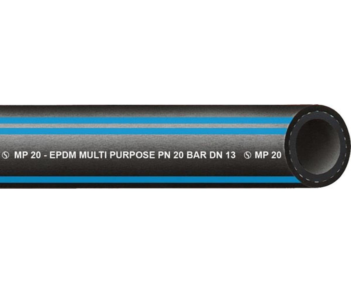 Weitere technische Eigenschaften · Gewicht: 0,300kg · Biegeradius: 80mm · Aufdruck: MP 20 - EPDM Multi Purpose PN 20 bar DN .. · Bemerkung: Nicht für Dampf geeignet! /Der Schlauch darf in geschlossenen Systemen nicht über 100°C eingesetzt werden (z.B. in der Temperiertechnik) · Elektrischer Widerstand Aussendecke: Elektrisch leitfähig <106 O · Elektrischer Widerstand Schlauchseele: Elektrisch leitfähig <106 O · Extrudierte Streifen: 3 blaue Streifen · Farbe Aussendecke: Schwarz · Farbe Innenseele: Schwarz · Fertigungsart Innenseele: Glatt · Fertigungsweise Aussendecke: Glatt · Platzdruck: 80bar · Vielzweckschlauch MP 20 · L.40m ID 13,0mm AD 21,0mm · Aufdruck: MP 20 - EPDM Multi Purpose PN 20 bar DN .. · Bemerkung: Nicht für Dampf geeignet! /Der Schlauch darf in geschlossenen Systemen nicht über 100°C eingesetzt werden (z.B. in der Temperiertechnik) · Elektrischer Widerstand Aussendecke: Elektrisch leitfähig <106 O · Elektrischer Widerstand Schlauchseele: Elektrisch leitfähig <106 O · Extrudierte Streifen: 3 blaue Streifen · Farbe Aussendecke: Schwarz · Farbe Innenseele: Schwarz · Fertigungsart Innenseele: Glatt · Fertigungsweise Aussendecke: Glatt · Platzdruck: 80bar ·