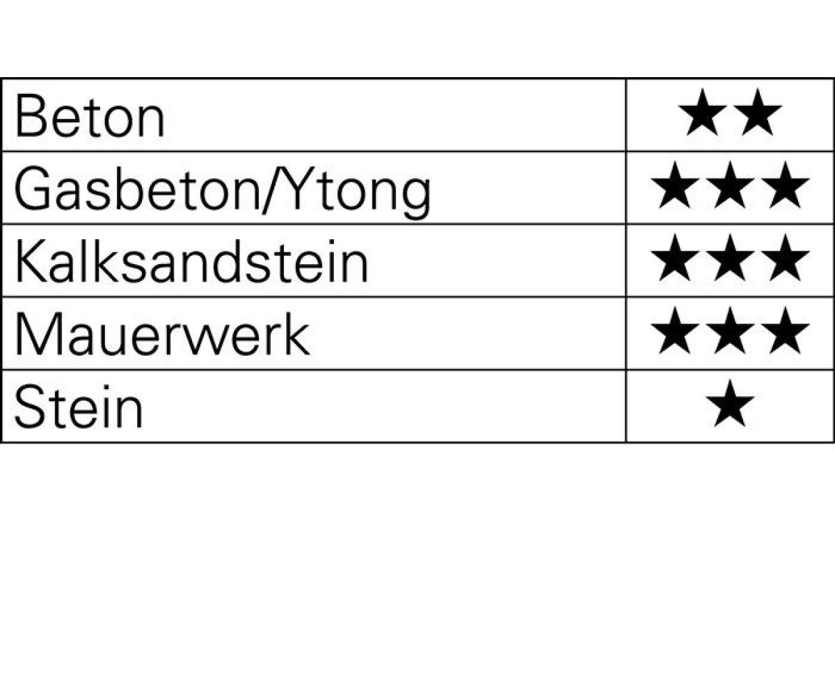 SDS-plus · effektiver Bohrmehlabtransport durch aggressive Spitzen- und Wendel-Ausführung · zertifiziert durch die Prüfgemeinschaft Mauerbohrer (PGM) nach Anforderungen des Deutschen Instituts für Bautechnik (DIBt) Anwendungsbereiche: Beton, Kalksandstein, Mauerwerk (für alle Beton- und Steinanwendungen)