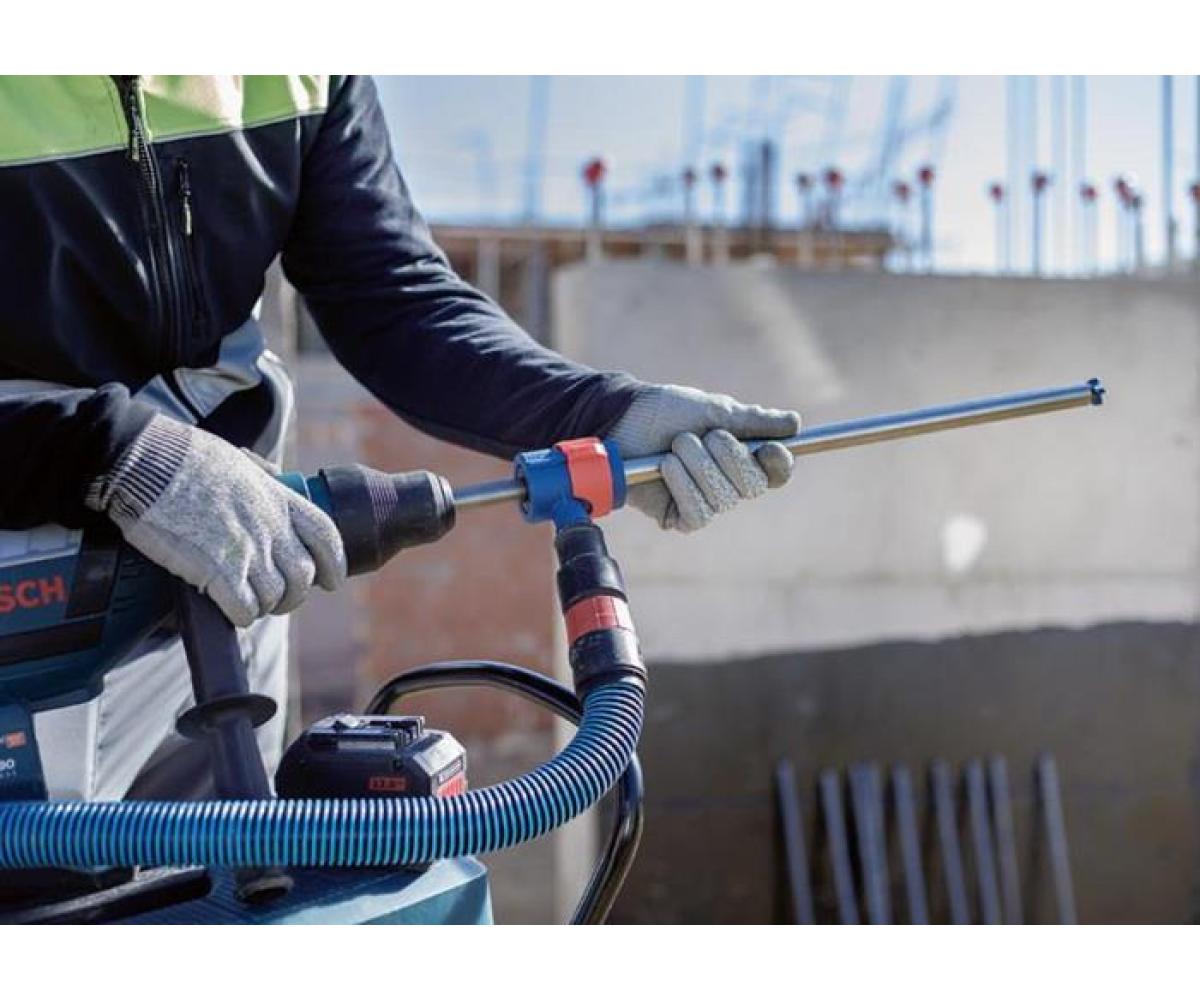 Bohren in Stahlbeton mit verbesserter Staubreduzierung · hocheffizienter Abtransport von Staub mit Bosch Particle Control · durchdringt Stahlbeton mit einem Voll-Carbide-Kopf mit 4 Schneidern · bohrt Löcher und entfernt gleichzeitig Staub - beschleunigt und vereinfacht die Installation chemischer Dübel · für Bauarbeiter und Installateure entwickelt, die Löcher für chemische Dübel bohren müssen · mit 4-Schneider-Vollhartmetallkopf und einem robusten Staubsaugerrohr · mit SDS Clean max Anschluss, der für alle SDS Clean max-8X Bohrer geeignet und ebenso einfach zu montieren wie abzunehmen ist · bei Verstopfung leicht zu reinigen: einfach das Absaugrohr vom Bohrer abnehmen · neue Technologie zur Staubreduzierung, mit der Löcher für chemische Dübel schneller vorbereitet werden können