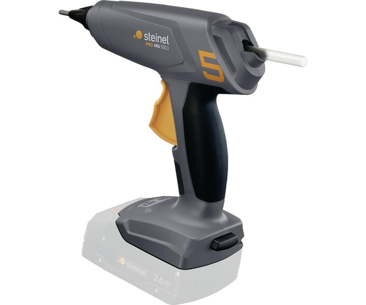 Allrounder - handlich, leicht, punktgenau · professionelles, kabelloses und kraftvolles Kleben · hohe Fördermenge · wechselbare Düse · bis zu 100 Minuten Arbeitsleistung (Akku 2,0 Ah)
