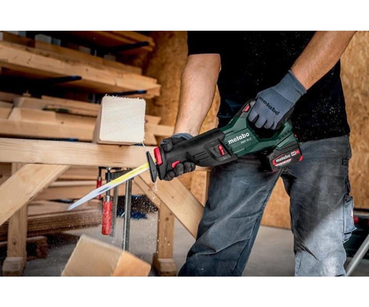Lieferumfang: ohne Akku, ohne Ladegerät, Säbelsägeblatt für Holz und Metall, metaBOX 165 L