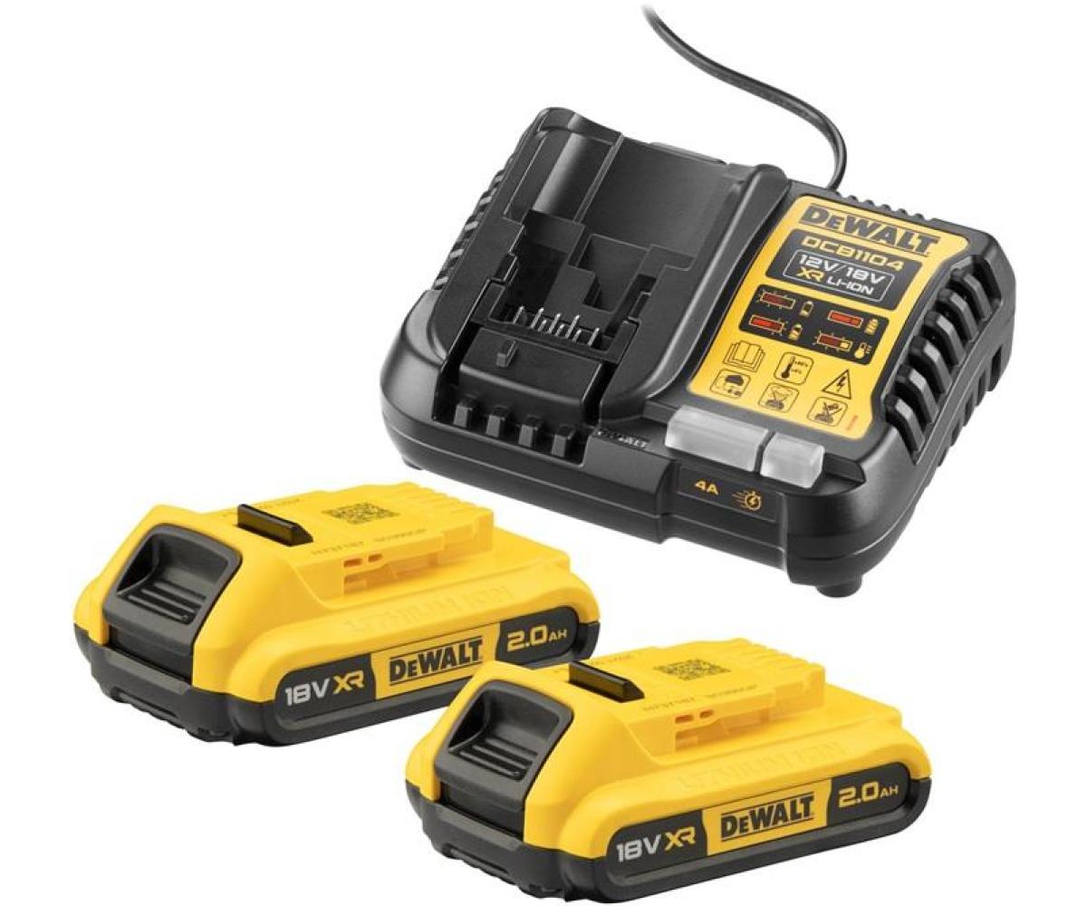 Lieferumfang: 2 Akkus DCB183 2,0 Ah, Schnellladegerät DCB 1104