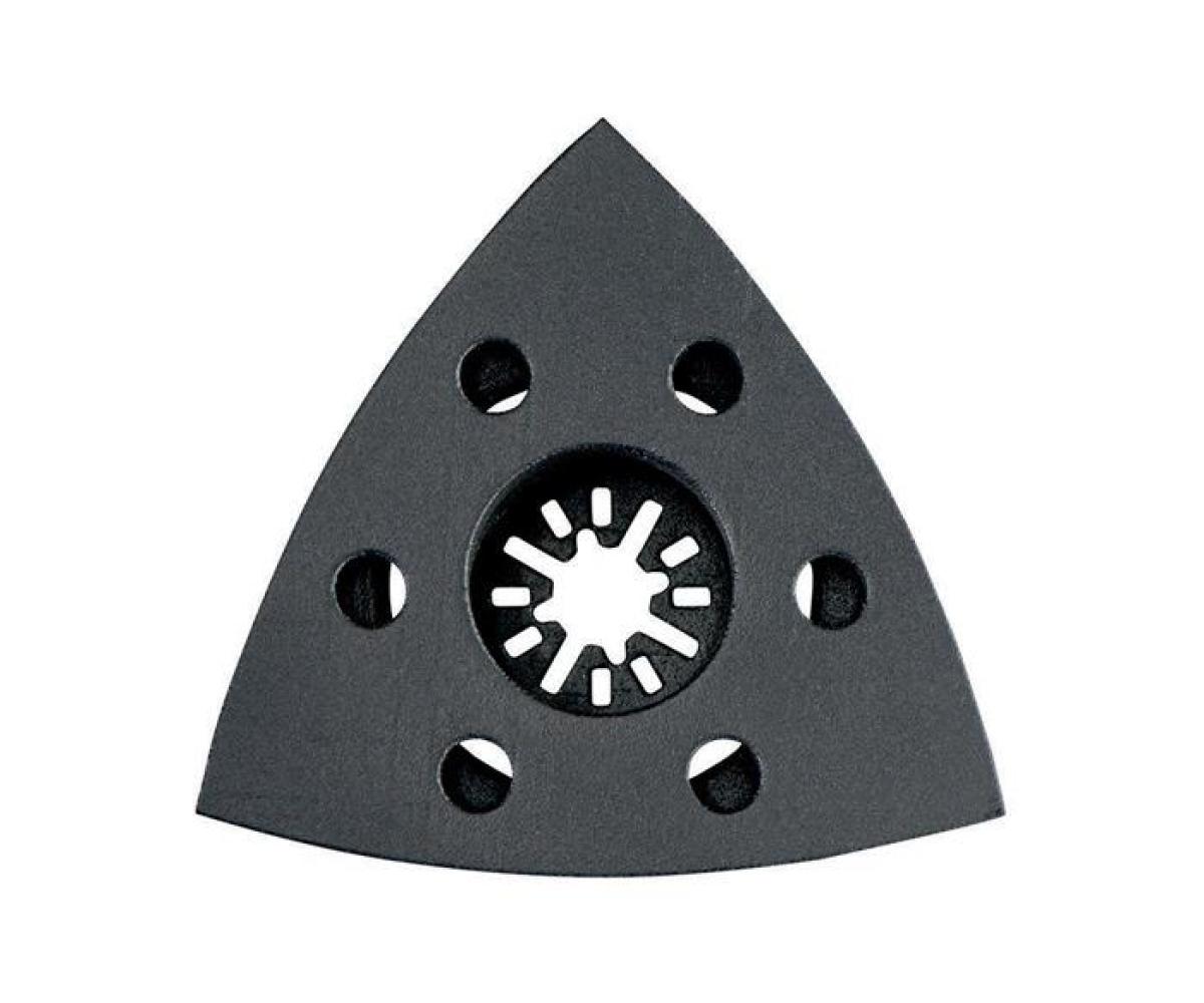 gelochte Schleifplatte mit Kletthaftung · schneller einfacher Wechsel der Schleifblätter für Multitool · Maß von Eck zu Eck: 93 mm