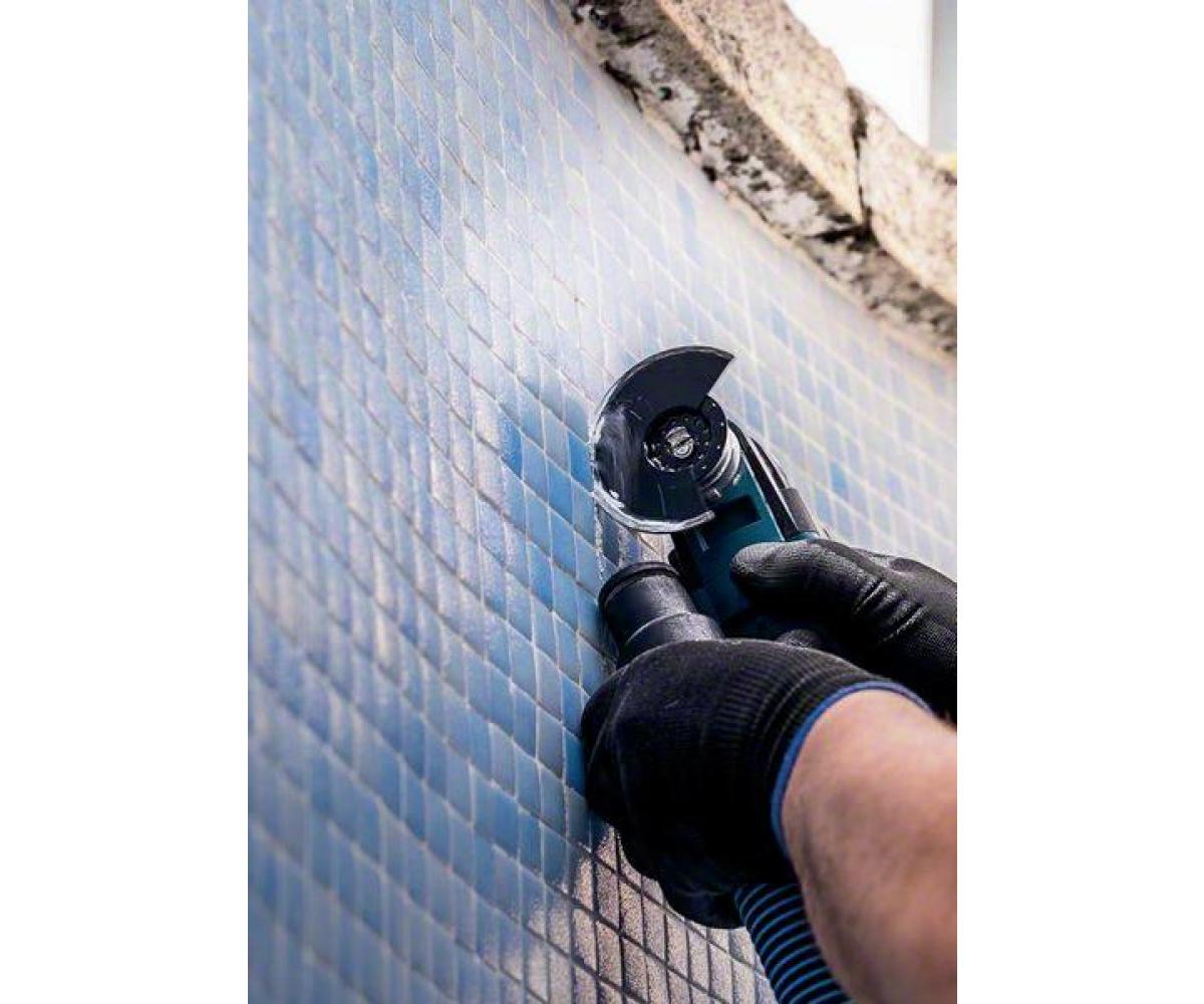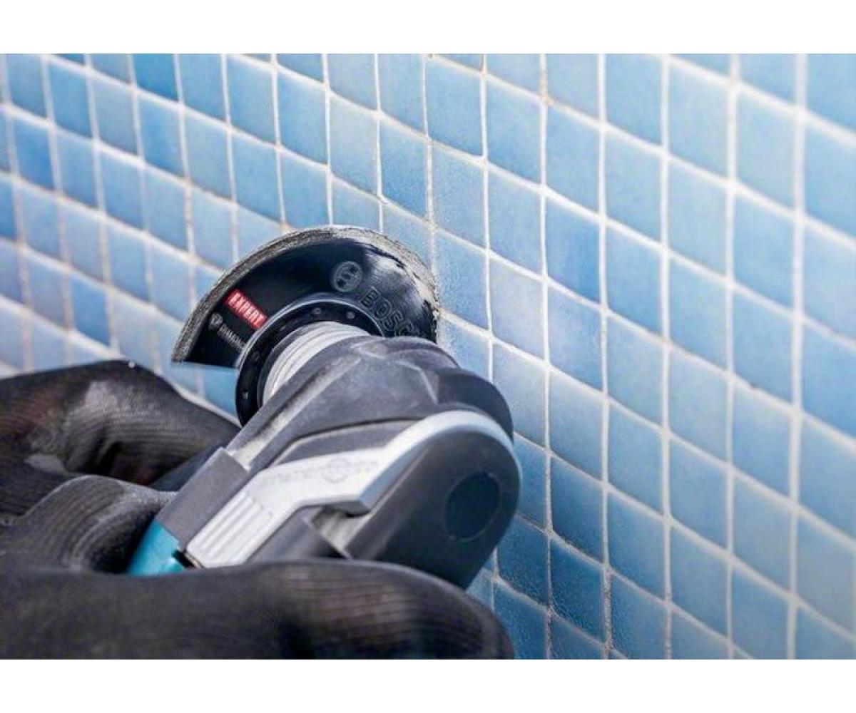 die Bosch Diamond Technology bietet eine feine Schneidekante aus hochwertigen Diamantkörnern, die maximale Verschleißfestigkeit in hartem Mörtel bieten · es kann auch für kleine Anpassungsschnitte in weichen Fliesen genutzt werden · Starlock Aufnahme für maximale Kraftübertragung