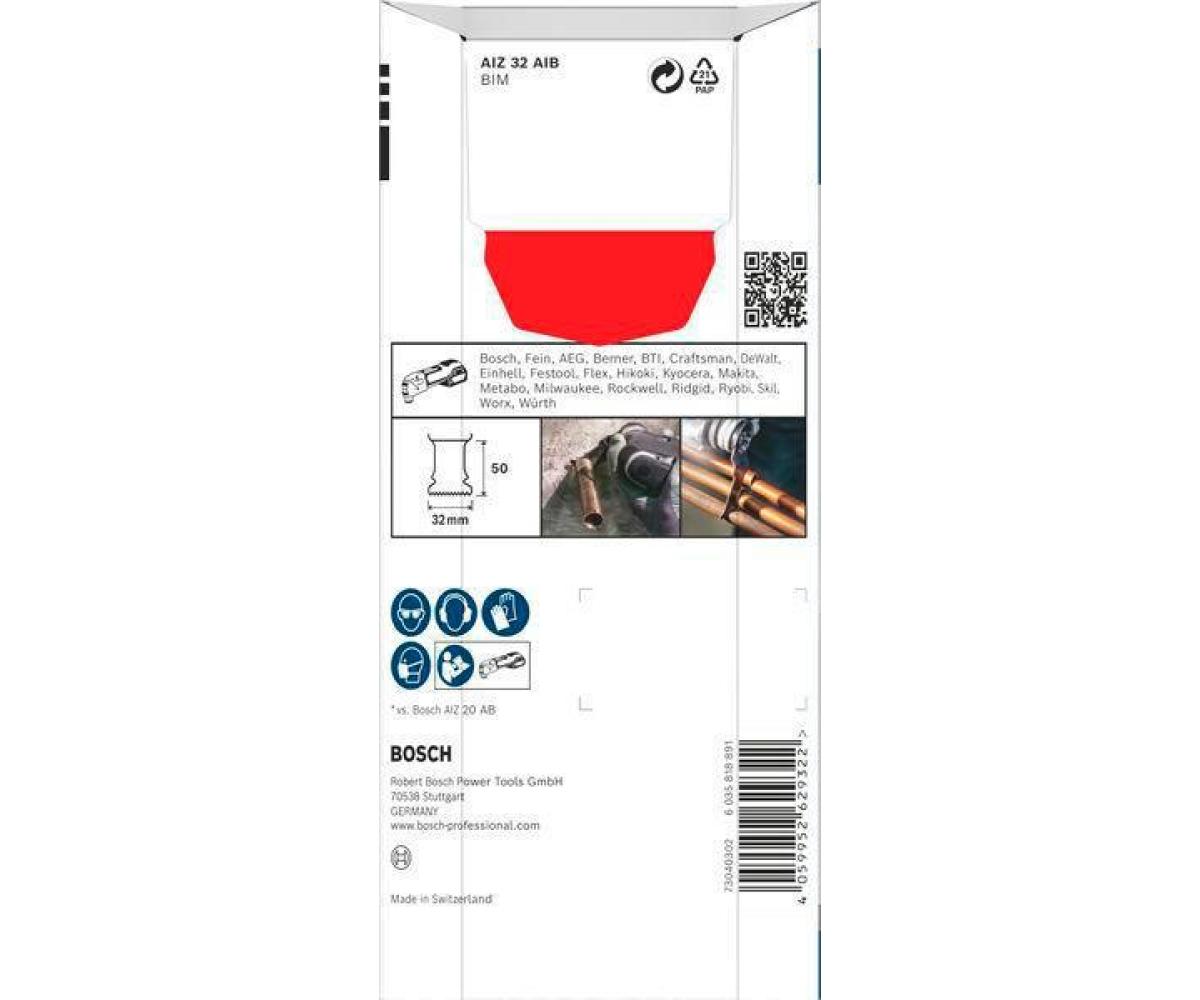 Weitere technische Eigenschaften · Arbeitsbreite: 32mm · Arbeitstiefe: 50mm · Tauchsägeblatt AIZ 32 AIB · B.32mm Eintauch-T.50mm 10 · St.Starlock BOSCH ·