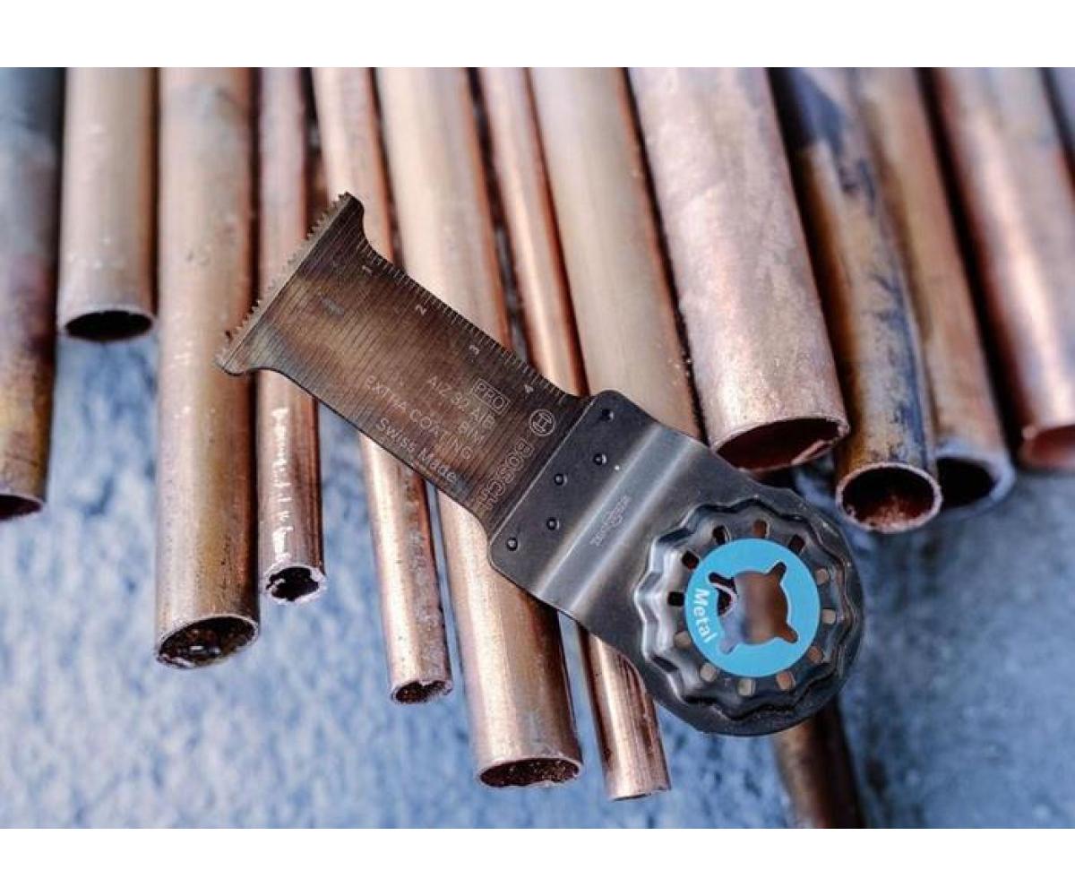 zum problemlosen Schneiden in ungehärteten Metallen · herausragende Lebensdauer in weichem Metall · Bi-Metall Blatt: kombiniert harte Zähne mit flexiblem Blattkörper · ideal um an schwer zugängliche Stellen zu gelangen und alte Rohre aus Nichteisenmetall und Formstücke abzutrennen – präzise und ohne zusätzlichen Arbeitsaufwand · aus BI-Metall mit beschichteten Zähnen