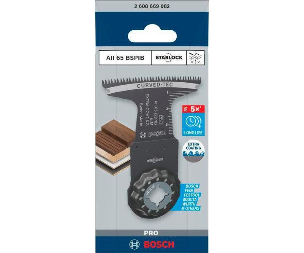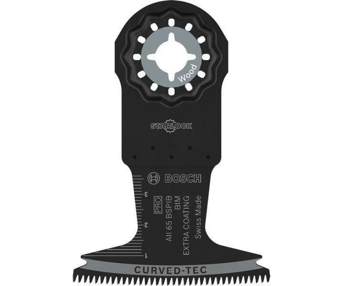 zum Schneiden in Hartholz und abrasiven Holzwerkstoffen, sowie für Tauchschnitte in Hartholz und Holzverbundwerkstoffen · Bi-Metall Blatt kombiniert harte Zähne (japanisch) mit flexiblem Blattkörper · ermöglicht aggressive und schnelle Schnitte mit wenigen Hitzespuren · Curved-Tec-Design: ideal für ausrissfreie Tauchschnitte