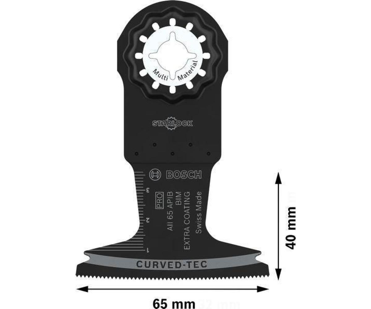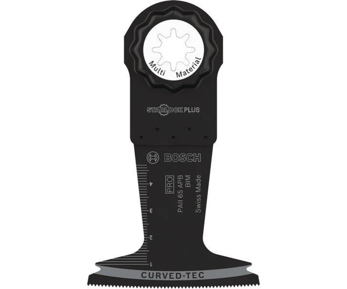 zum schnellen Schneiden von Holz, weichem Metall und Kunststoff · für Tauchschnitte, Bündigschnitte und präzise Ausschnitte · Bi-Metall Blatt kombiniert harte, beschichtete Zähne mit flexiblem Blattkörper · Curved-Tec-Design: ideal für ausrissfreie Tauchschnitte