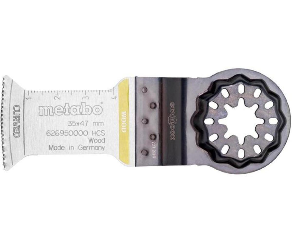 Weitere technische Eigenschaften · Breite: 32mm · Länge: 47mm · Material: HCS · Materialeignung: Weichholz · Verkaufseinheit: 5 · Zahnteilung: 1,3 mm/20 TPI · Tauchsägeblatt Starlock L · .45mm B.32mm HCS Zahnt. 1 · ,3mm/20TPI 5 St. Metabo ·