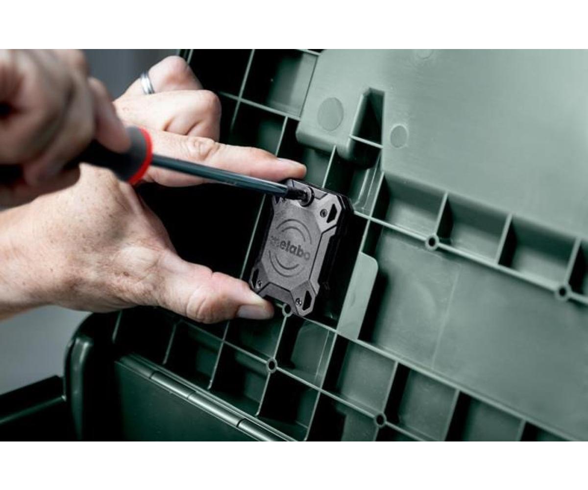 geeignet für iOS · finde dein Werkzeug auf der Baustelle und überall auf der Welt mit der "Wo ist?" App von Apple und dem Metabo Tracker · Tracking im Nahbereich: laute Signaltöne (120 dB) · aktivierbare Push-Nachrichten bei Distanzüberschreitung zum Tracker · volle 3 Jahre Batterielaufzeit · zahlreiche Fixiermöglichkeiten des Trackers am Objekt oder der meta-BOX · kompatibel zu Apple Carplay