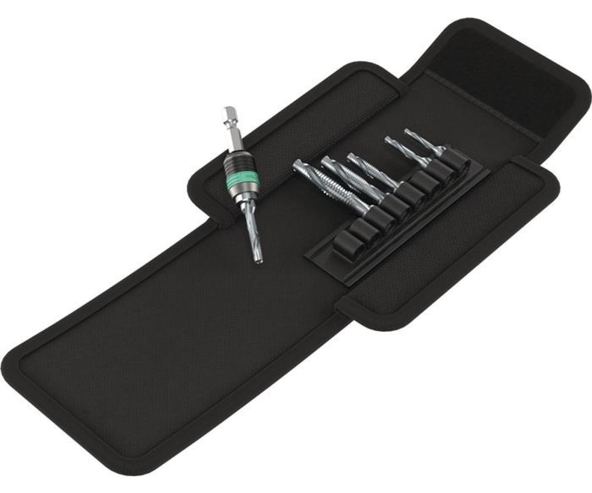 ideal für Reparatur- und Montagearbeiten im mobilen Einsatz · Rapidaptor-Halter für schnellen Bitwechsel · mit 1/4“ Antrieb passend für die Schraubermaschine · mit Rapidaptor Universalhalter und Kombigewindebohrer-Bits mit 1/4“ Antrieb Inhalt: K Rapidaptor Universalhalter 1x 1/4“ x 50 mm HSS Kombigewindebohrer 1x 2,5 mm x 36 mm x M 3, 1x 3,3 mm x 39 mm x M 4, 1x 4,2 mm x 41 mm x M 5, 1x 5 mm x 44 mm x M 6, 1x 6,8 mm x 51 mm x M 8, 1x 8,5 mm x 59 mm x M 10 Falttasche für Kombigewindebohrer-Bit-Satz 847/7, ohne Werkzeug, 90 x 115 mm mit Wera 2go Kompatibilität