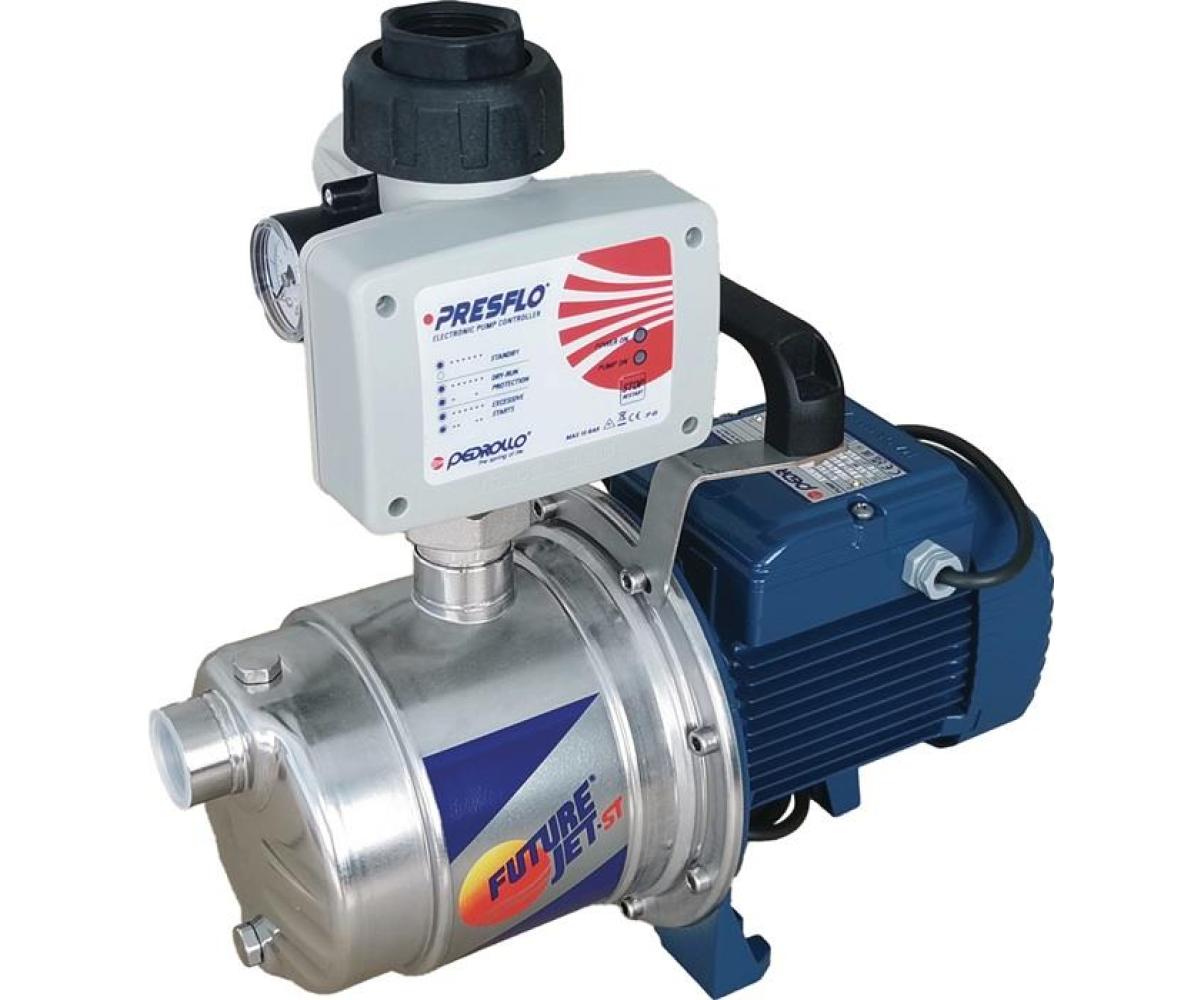 steckerfertige Qualitäts-Gartenpumpe für den vielseitigen Einsatz in der Gartenbewässerung und privaten Wasserversorgung · stabiler Griff zum angenehmen Tragen · Edelstahlpumpe zeichnet sich durch höchste Energieeffizienz und hohe Förderleistung aus · durch die Pumpensteuerung Presflo startet und stoppt die Pumpe bei Bedarf automatisch · ebenso schützt die Presflo die Pumpe vor Schäden durch Trockenlaufen · anschlussfertig verkabelt
