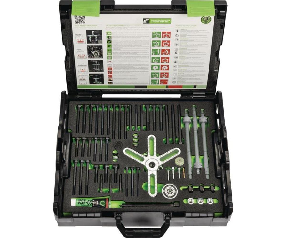 Weitere technische Eigenschaften · Anzahl der Griffe: 1 · Anzahl der Teile: 83 · Bestandteile: 68-1 · Ersatzteile erhältlich: Ja · Gesamtbreite [mm]: 174mm · Gesamthöhe [mm]: 28mm · Gesamthöhe Koffer [mm]: 28mm · Gesamtlänge Koffer [mm]: 174mm · Gesamttiefe [mm]: 174mm · Gesamttiefe Koffer [mm]: 174mm · Gewicht Netto [kg]: 6,9kg · Kofferart: K-L-BOXX-L-136 · Material: Werkzeugstahl · Material des Koffers: Kunststoff · Passend zu Sortimo-Aufbewahrungssystem: Ja · Schaumstoffeinlage: Ja · Schlüsselweite Betätigungssechskant [mm]: 13mm · Spanntiefe Abziehvorrichtung [mm]: 205mm · Stapelbar: Ja · max. Drehmoment [Nm]: 70Nm · max. Zugkraft [kN]: 50kN · Spannweite Abziehvorrichtung (min. - max.) [mm]: 58 - 150mm · Seitenbolzen-Abziehsatz · K-68 Spann-W.58-150mm · Zugkr.5 t KUKKO · Benefits: - Der Satz deckt eine Vielzahl an gängigen Normgewinden für das Adaptieren der Abziehvorrichtung ab - Die Multi-Traverse der Baureihe 68 ermöglicht das Abziehen über zwei oder drei Gewinde in dem zu demontierenden Bauteil - Der Satz ist ausgestattet mit Seitenbolzen und kann so mit Trennmessern und TRI-PULL- Werkzeugen (Baureihe 13) kombiniert werden ·