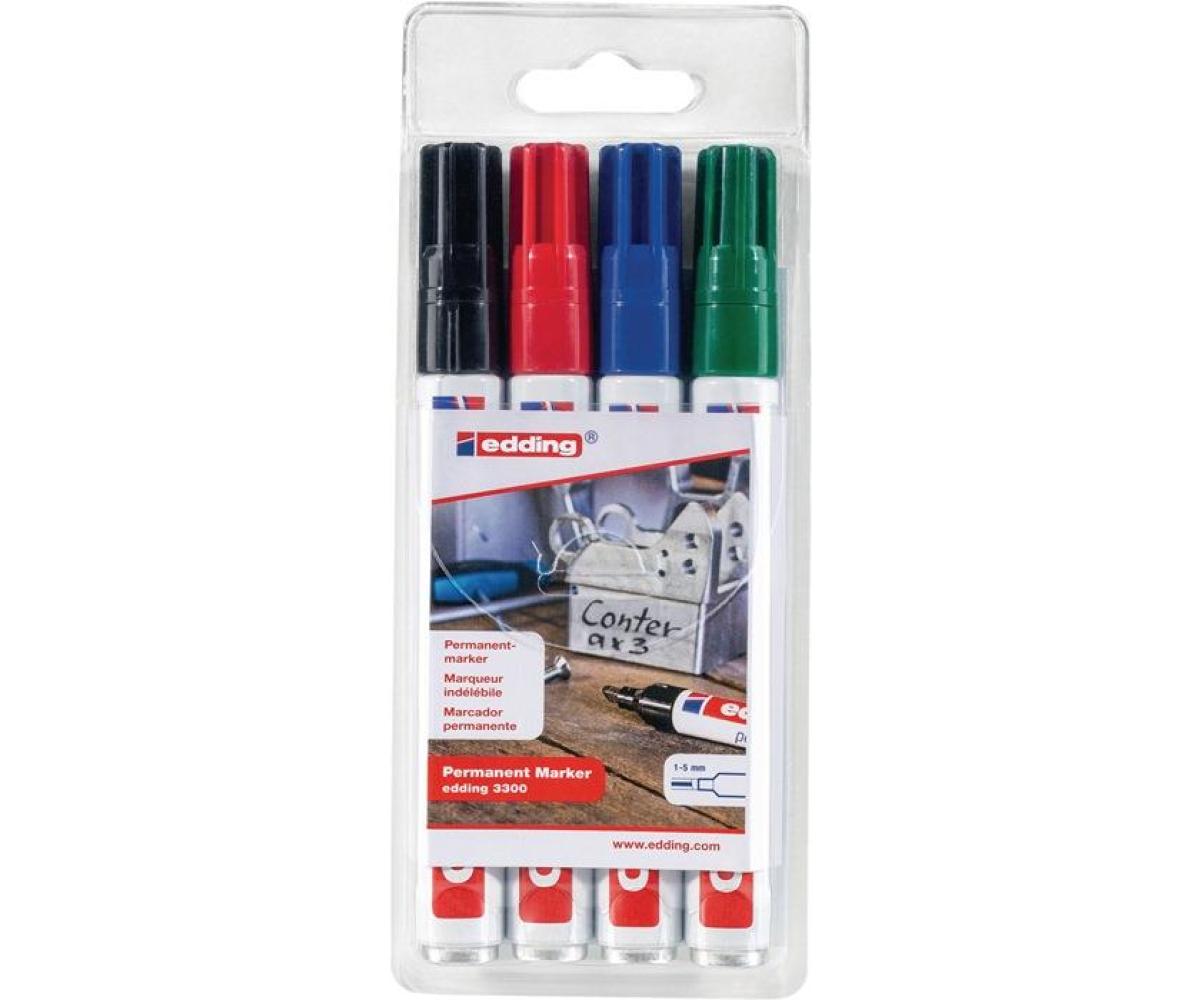 Permanentmarkerset 3300 · schwarz/rot/blau/grün · Strich-B.1-5mm Keilspitze ·