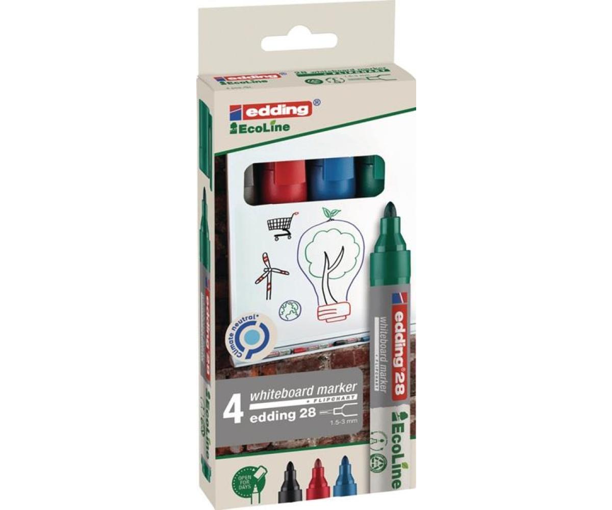 Whiteboardmarkerset 28 · EcoLine · schwarz/rot/blau/grün · Rundspitze ·