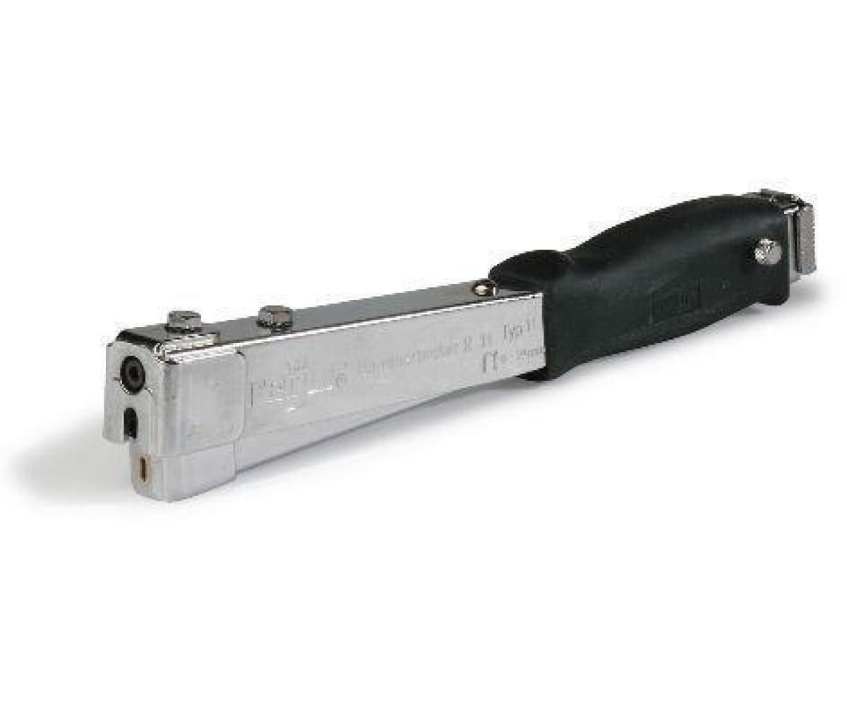 Ideal zur Befestigung von Dachpappen · Unterspannbahnen · Folien und Dämmstoffen Die Heftklammern werden beim Aufschlag eingetrieben Schnelles und einfaches Nachladen der Klammern Aus Ganzmetall mit Komfortgriff Abrutschschutz für Flachdrahtheftklammern Masse: 300 x 32 x 55 mm (L x B x H) Gewicht: ca. 860 g