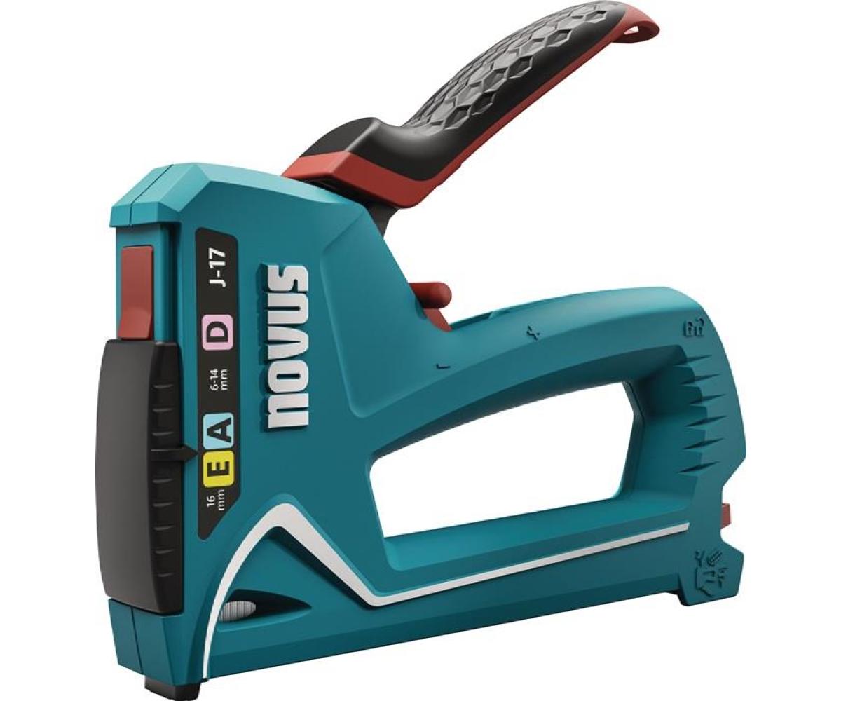 mit hochwertigem ABS-Kunststoffgehäuse · einfacher Wechsel zwischen Feindrahtklammern, Nägeln und Flachdrahtklammern per Schiebemechanismus · ergonomischer Softgrip-Hebel für komfortables Arbeiten · Griffverriegelung zum Verstauen bei Nichtgebrauch · gut sichtbare Klammerfüllstandsanzeige · Unterlademechanik mit Sicherheitsentriegelung zum schnellen Nachladen · richtige Schlagkraft für Weich- oder Hartholz