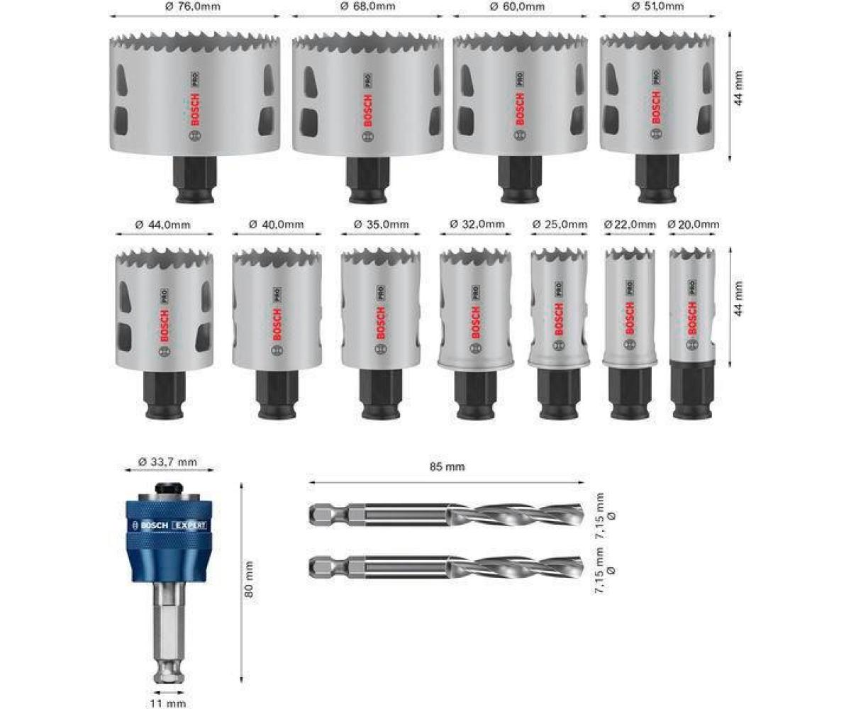 Lochsägen-Set PRO Multi Material PC Plus 14-tlg.20-76mm Schnitt-T.44mm