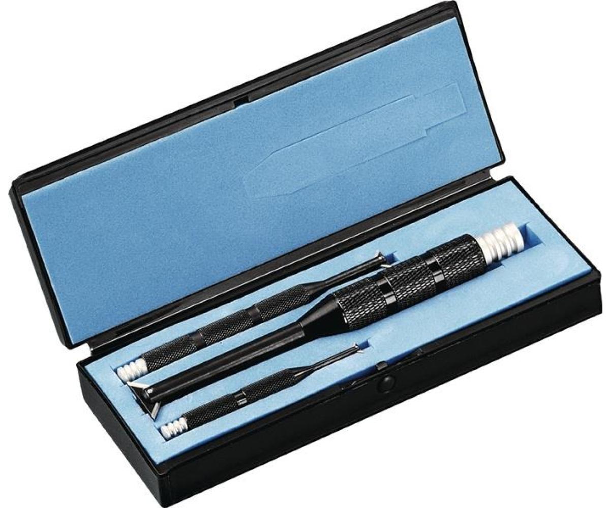 mit der schwenkbaren Klinge in der praktischen Aufbewahrungsbox Inhalt: 3 Aluminiumgriffe schwenkbare HSS-Klinge GT-BR1000 für Ø 3–5,5 mm EL-RC1000 schwenkbare HSS-Klinge GT-BR2000 für Ø 5,5–10 mm EL-RC2000 schwenkbare HSS-Klinge GT-BR2200 für Ø 10–22 mm EL-RC2200 je ein Innensechskant-Schlüssel zum Wechseln der Klinge