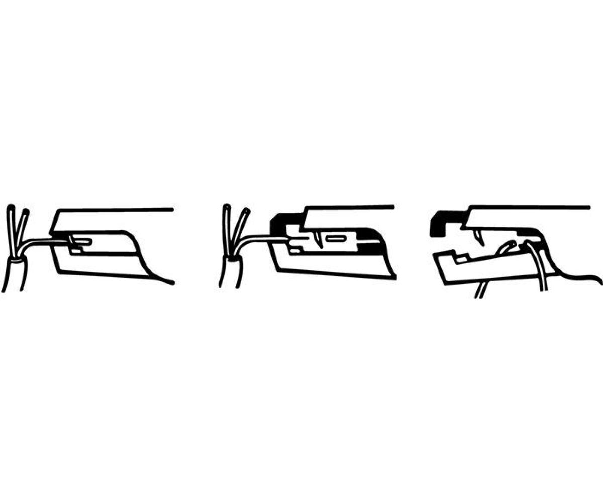 ergonomisch · mit integriertem Sicherheitsschneider für Massivleiter bis 2,5 mm Ø · keine Einstellung auf Leiterquerschnitt erforderlich · automatisches Abisolieren und Abziehen der Isolation in einem Arbeitsgang