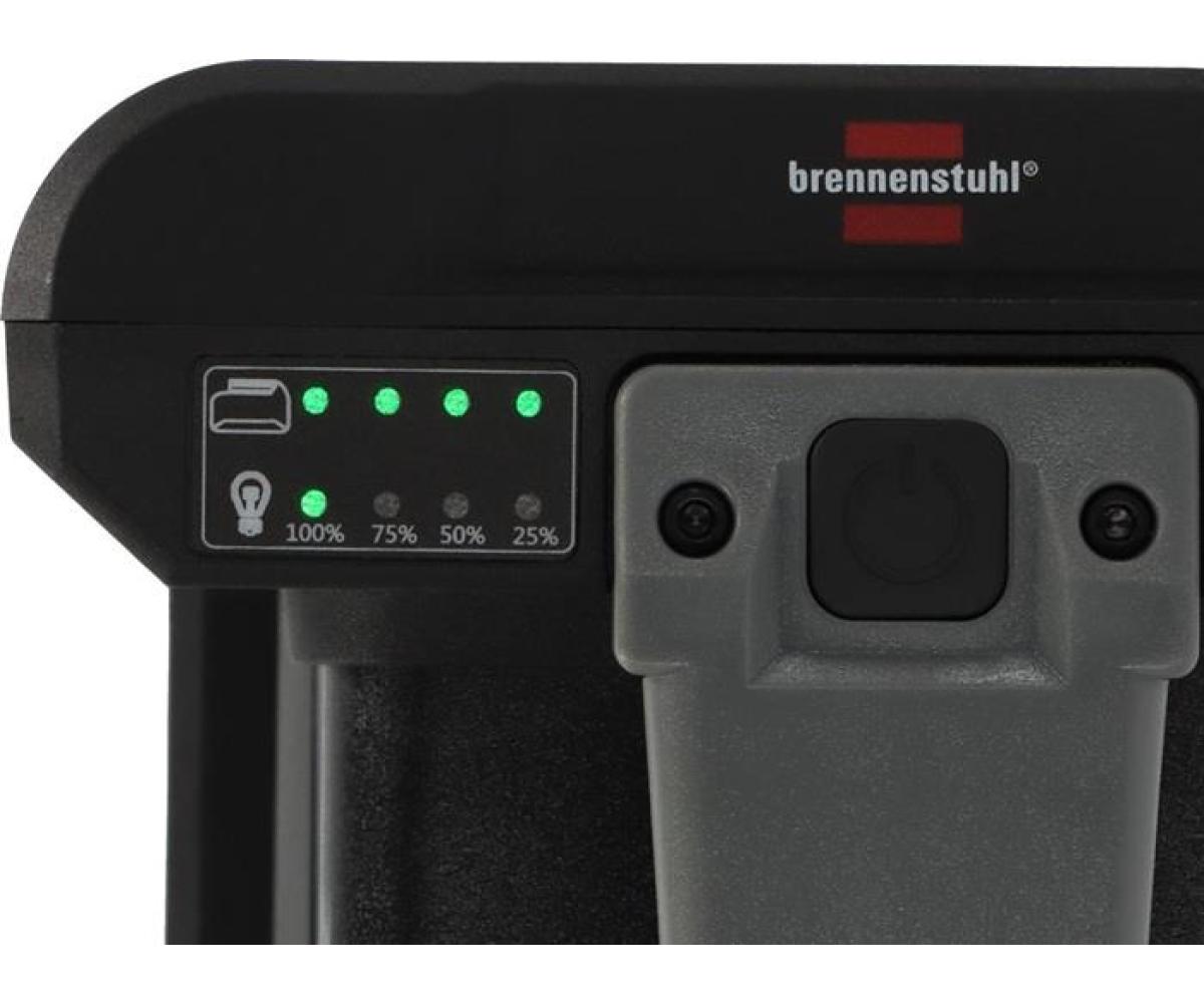 Weitere technische Eigenschaften · Höhe: 19,50cm · Tiefe: 21,4cm · Temperaturbereich: -10 · 40°C · Gewicht: 1,73kg · Breite: 19,50cm · Leuchtmittel: LED nicht austauschbar · Anzahl der Leuchtmittel: 2 · Anzahl der Magnete: 4 · Ausführung der Oberfläche: matt · Ausgangsspannungsart: Gleichspannung (DC) · Eingangsspannungsart: Gleichspannung (DC) · Energieverbrauch im Ein-Zustand: 20 · Farbe (1): grau · Farbe der Abdeckung: transparent · Farbwertanteile (x): 0,308 · Farbwertanteile (y): 0,332 · Farbwiedergabeindex: 80-89 (Klasse 1B) · Für "erschwerte Bedingungen" (nach VDE): ja · Geeignet für Außenbereich: ja · Gehäusefarbe: schwarz · Gehäusefarbe (1): grau · Halogenfrei: ja · Hammerzeichen: ja · Handhabung: mobil · Klappbar/ Knickbar: ja · Lampenleistung: 20W · Leuchtfarbe: weiß · Leuchtmittel enthalten: ja · Lichtaustritt: direkt · Lichtfarbe gemäß EN 12464-1: kühl >5300K · Lichtstrom einstellbar: Stufen · Magnet integriert: ja · Mit Batterie-Statusanzeige: ja · Mit Ein-/Ausschalter: ja · Mit Tragegriff: ja · Nutzlichtstrom: 2160lm · Schlagfestigkeit: IK08 · Schutzklasse: III · Stoßfestigkeit: ja · Stromversorgung: Akku · Ungebündeltes oder gebündeltes Licht: DLS · Verpackung: Im Verkaufskarton · Verwendete Beleuchtungstechnologie: LED · Werkstoff der Abdeckung: Kunststoff transparent · Werkstoff Gehäuse: Kunststoff · Wirkungsgrad Lampe: 108lm/W · Akku-Handleuchte HL 3000 · 18V 20 W 2160 lm · BRENNENSTUHL