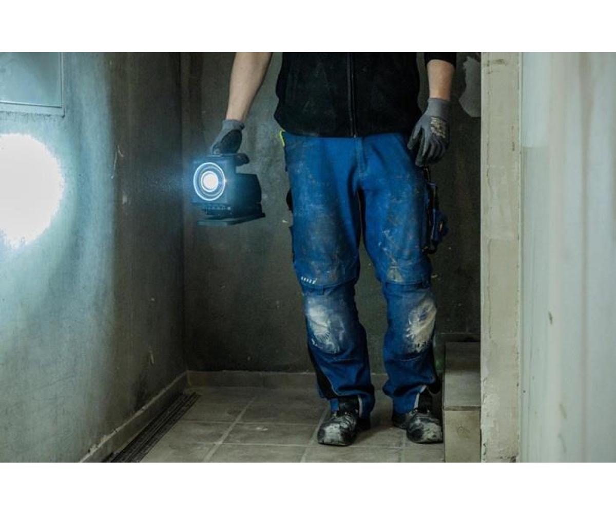 2 in 1: Handscheinwerfer und Arbeitsstrahler in einem · mit ergonomischem Griff und verstellbarem Magnetfuß · kompatibel mit verschiedenen 18V Akkus (verschiedene Ah Klassen) der Powertool-Hersteller Bosch Professional, Dewalt, Festool, Flex, Makita, Metabo CAS und Milwaukee · mit Ein/Aus Schalter · Schutzart: IP54 · Farbtemperatur: 6500K · Schutzklasse: III IK08 BGI608 K2: Einsatz für den rauen Betrieb mit hohen mechanischen, physikalischen und chemischen Einwirkungen