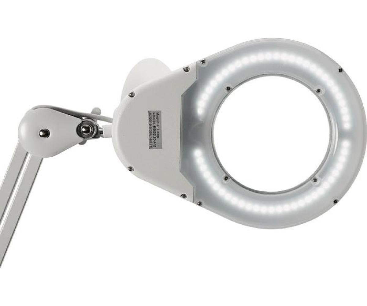 LED-Lupenleuchte · Glaslinse 127mm (5 Zoll) · Tischklemme weiß