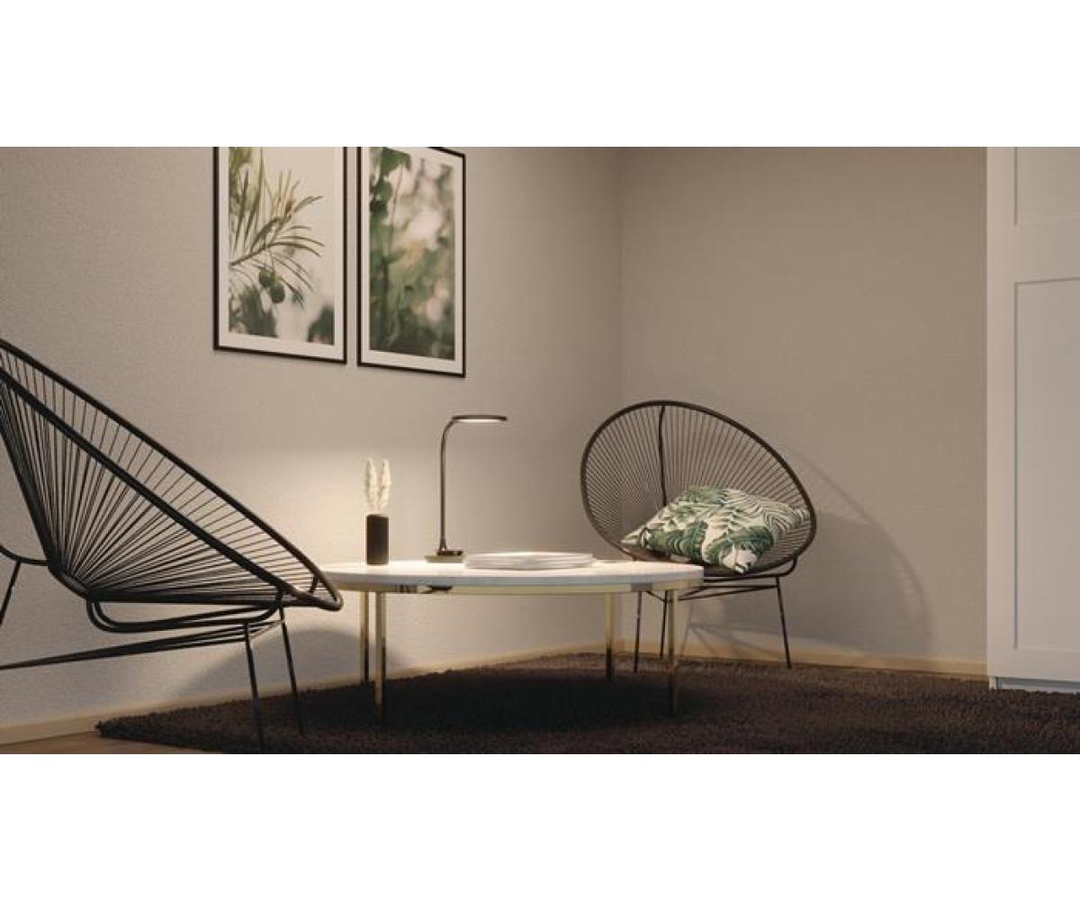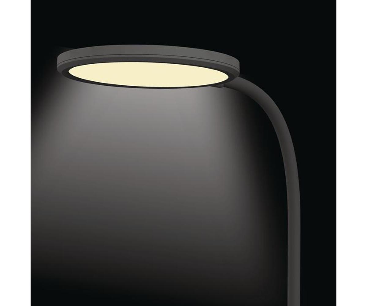 ABS/Silikon · mit Standfuß und zur Wandmontage geeignet · 3-Stufen-Dimmer · mit flexiblem Schwanenhalsarm · Armlänge 300 mm - Höhe 390 mm · Lichtfarbe 2.800 – 5.700Kelvin – warmweiß - tageslichtweiß · Lichtstrom 530 Lumen · Lebensdauer 30.000 Stunden · Effizienzklasse F (Spektrum A bis G) · gewichteter Energieverbrauch 9kWh/1000h · diese Leuchte enthält eingebaute LED-Lampen · die Lampen können nicht ausgetauscht werden