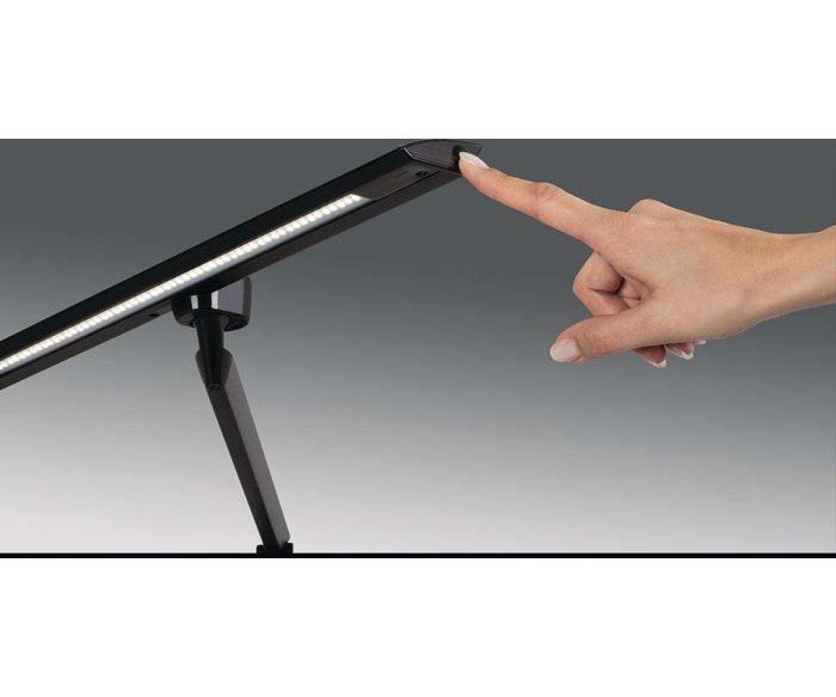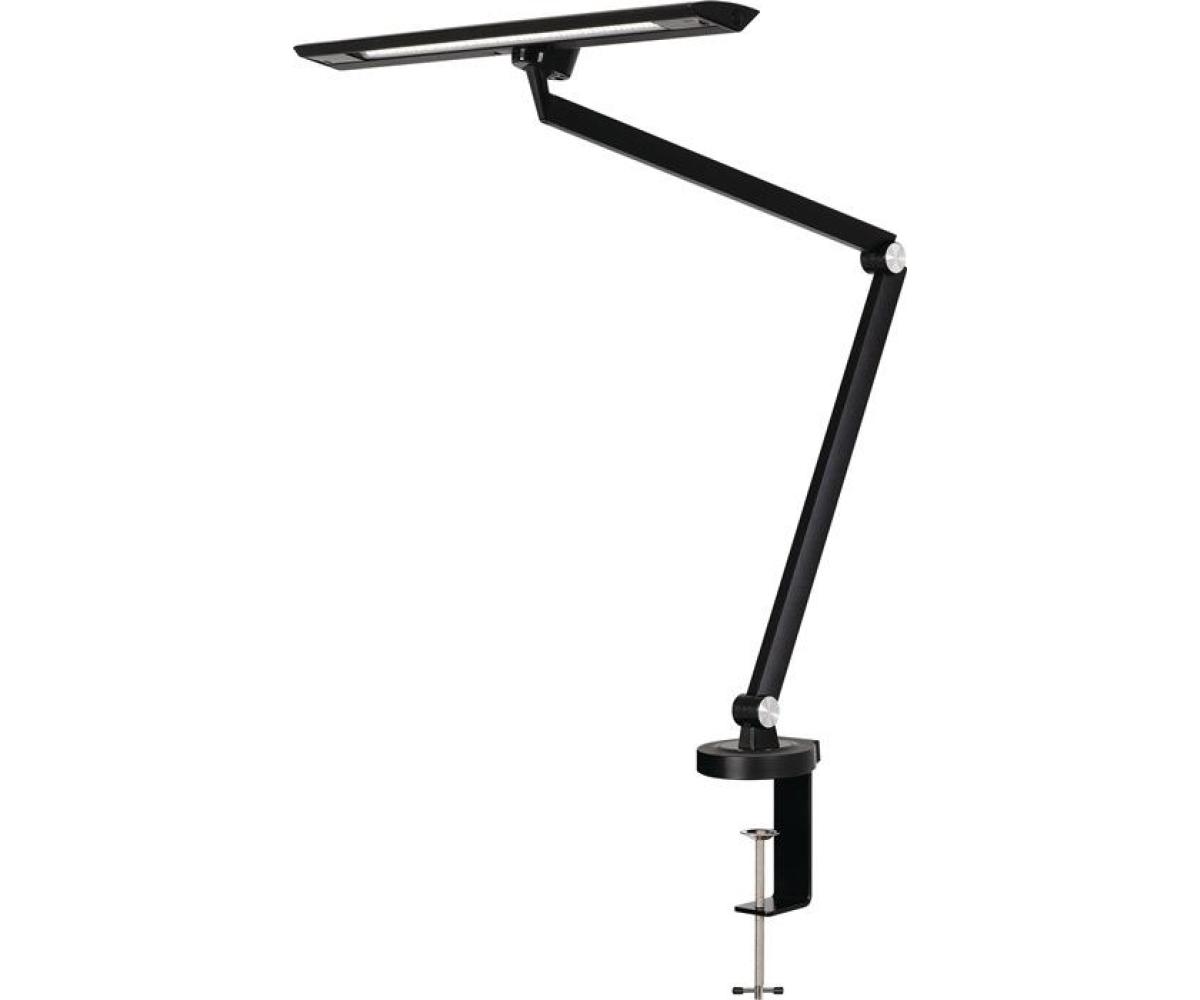 Aluminium/ABS · mit Tischklemme · Leuchtenkopf 420 x 70 mm - vielseitig verstellbar · stufenlos dimmbar oder in 3-Stufen verstellbar · Ausladung max. 800 mm - Höhe max. 820 mm · Betriebsspannung 100-240 V · Lichtfarbe 5.000 Kelvin - neutralweiß · Lichtstrom 650 Lumen · Lebensdauer 50.000 Stunden · gewichteter Energieverbrauch 12 kWh/1000h · Effizienzklasse D (Spektrum A bis G) · diese Leuchte enthält eingebaute LED-Lampen · die Lampen können nicht ausgetauscht werden