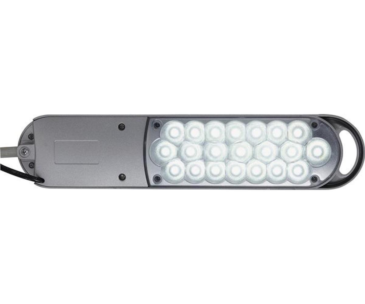 Metall/Kunststoff · mit Tischklemme oder Standfuß · Leuchtenkopf und Arm vielseitig verstellbar · Armlänge unten 330 mm - oben 340 mm - Höhe max. 410 mm (mit Standfuß), Höhe max. 380 mm (mit Tischklemme) · Betriebsspannung 220-240 V · Lichtfarbe 6.500 Kelvin - tageslichtweiß · Lichtstrom 860 Lumen · Lebensdauer 10.000 Stunden · gewichteter Energieverbrauch 6 kWh/1000 h · Effizienzklasse D (Spektrum A bis G)