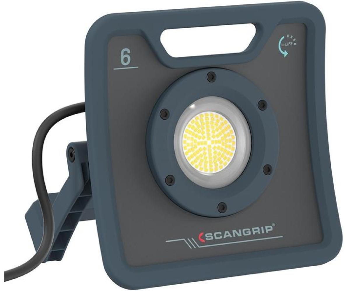 Weitere technische Eigenschaften · Lichtfarbe: 5700K · prüfpflichtig: ja · Aufprallschutz: IK07 · Betriebstemperatur: -25 to +40Grad Celsius · CRI Haupt: Ra > 80 · Einstellbare Lichtleistung Main: 6 level · Kabel: 196.9 in / H07RN-F 3G1.0 mm2 · Lichtquelle Haupt: High efficiency multi-LED design with 120 LEDs · OPTILight-Einstellung: 200 lux@2 m (EN-12464-2) · Strahlwinkel Haupt: 110Grad · Stromquelle: Cable · LED-Strahler NOVA 6 41 W · 600-6000 lm 5m H07RN-F · 3G1mm² IP67 SCANGRIP