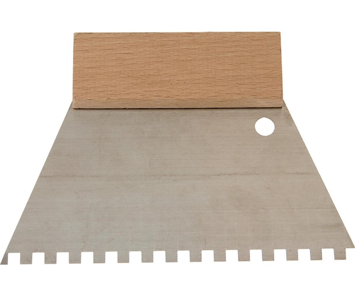 Kleberspachtel L.128mm B.180mm Zahn 6x6mm rostfr.VA Buchenholzgriff HAROMAC | 10 Stück