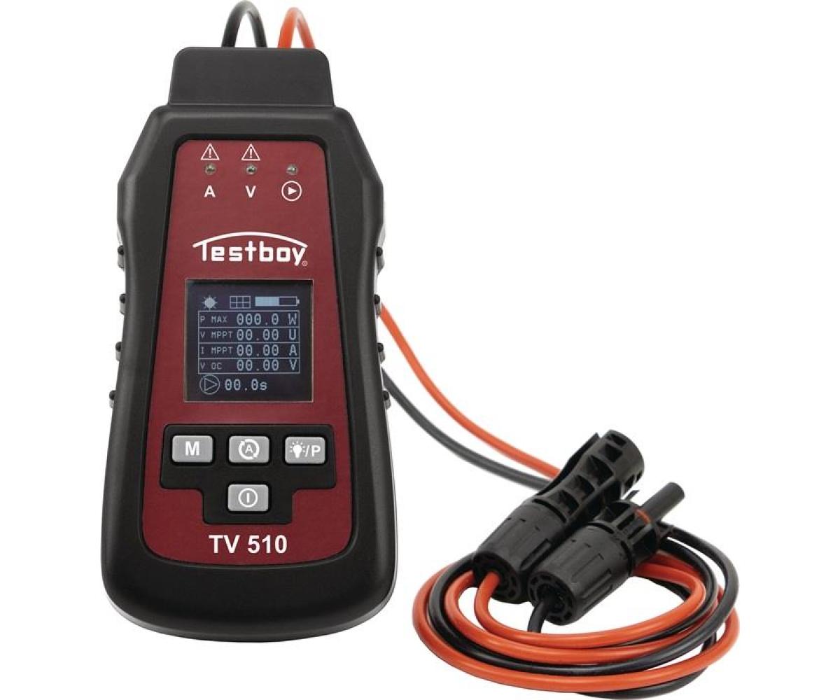 Solar Panel Tester TV 510 · Photovoltaik TESTBOY · Technische Spezifikationen: Leistung: 5-800 W Spannung: 12-60 V Strom: 0-35 A ·