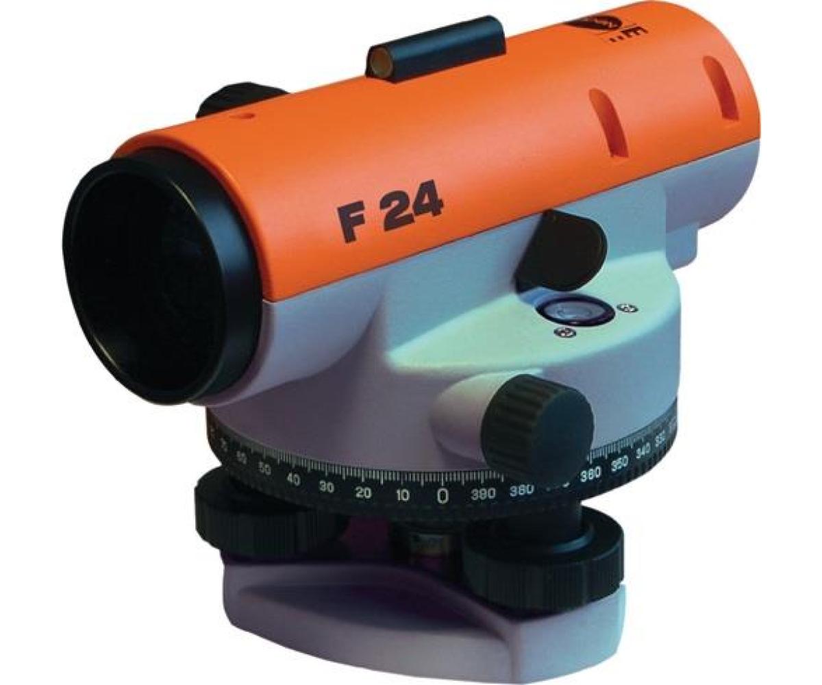 Nivelliergerät F24 · Objektiv-D.30mm NEDO · Technische Merkmale: Optik: Aufrecht Vergrößerung: 24 x Objektiv-Ø: 30 mm Kürzeste Zielweite: 0,6 m Multiplikationsfaktor 100 Kompensator: Standardabweichung ± 2,5 mm für 1 km Doppelnivellement Einstellgenauigkeit ± 0,5 Zoll Kompensationsbereich ± 15 Zoll ·