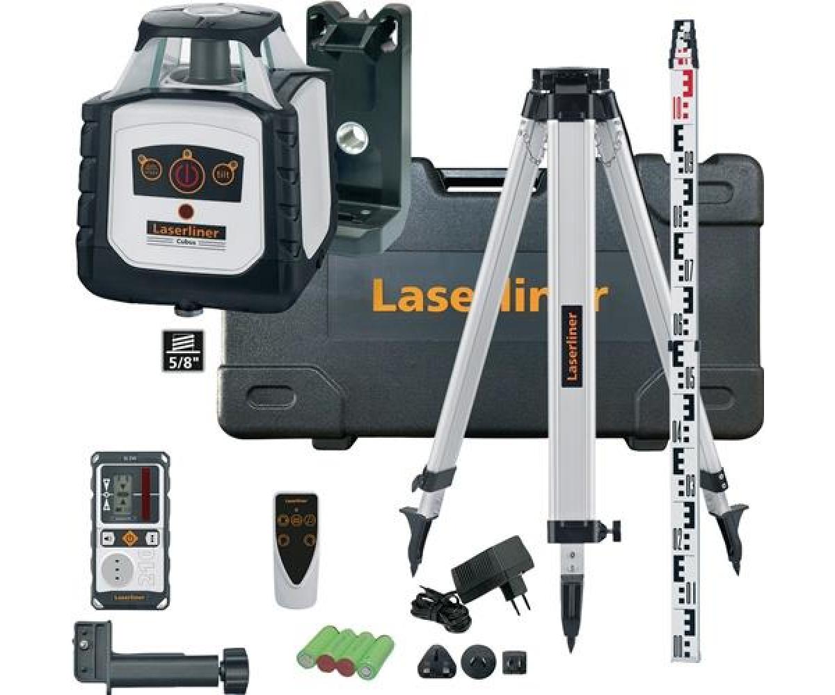 der vollautomatische Rotationslaser mit großer Reichweite ist ideal für Aushub- und Ausschachtungsarbeiten · das robuste Gerät ermöglicht ein genaues Nivellieren von Horizontalen und Vertikalen· ein 90° Referenzstrahl dient dem Loten und Ausrichten von Trennwänden · zu den verfügbaren Modi zählen der Punkt-, Scan-, Rotations- und Handempfängermodus · Neigungen lassen sich manuell anlegen · die Kombination aus Leichtstativ, Laserempfänger und Messlatte ist optimal für das Festlegen und Arbeiten mit Referenzmaßen · per Fernbedienung können alle Funktionen bis maximal 30 Metern komfortabel ferngesteuert werden· bei einer Fremdeinwirkung erfolgt die automatische Abschaltung zur Verhinderung von Fehlmessungen· durch paralleles Arbeiten und Laden des Akkus verliert der Anwender keine Zeit bei seiner Tätigkeit