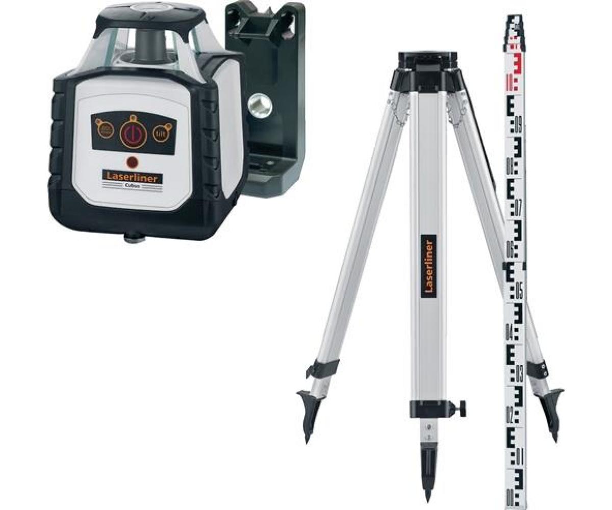 Lieferumfang: Cubus, SensoLite 210, Leichtstativ 150 cm, Stativ-/Wandhalterung, Universalhalterung, Teleskop-Nivellierlatte LT 4 m, Fernbedienung, Akku, Batterien, Netz-/Ladegerät inkl. internat. Adapter, Tragegurt, Tragekoffer