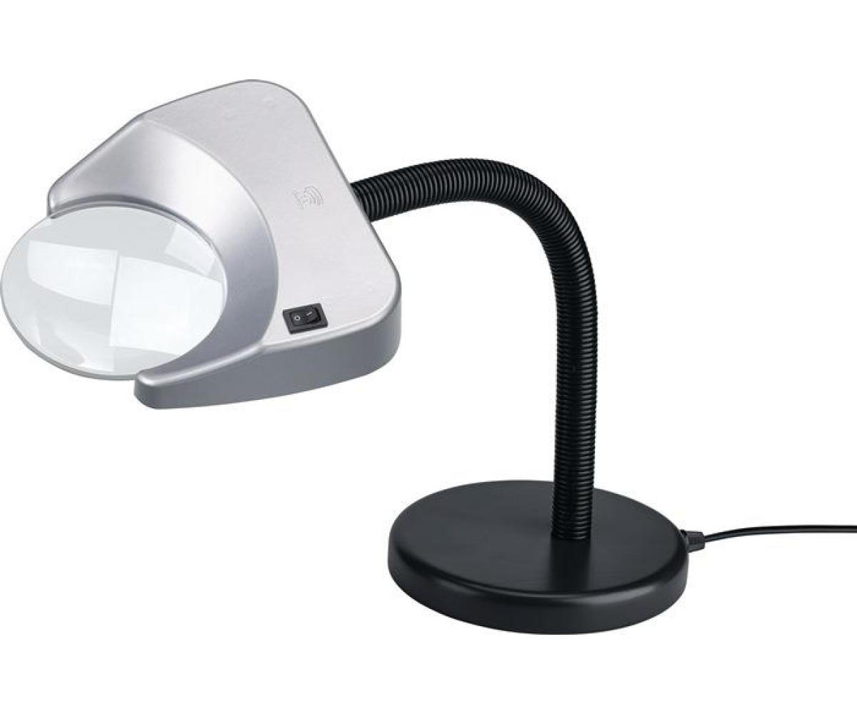 LED · bikonvexe, kratzfeste Silikatglaslinse · kontrastreich, mit hoher Schärfentiefe · geringer Energieverbrauch durch Hochleistungs-SMD-LEDs, mit 4500 K Lichtfarbe (Neutralweiß) · flexibler Schwanenhals mit schwerem Tischfuß · 1,5 m Netzkabellänge