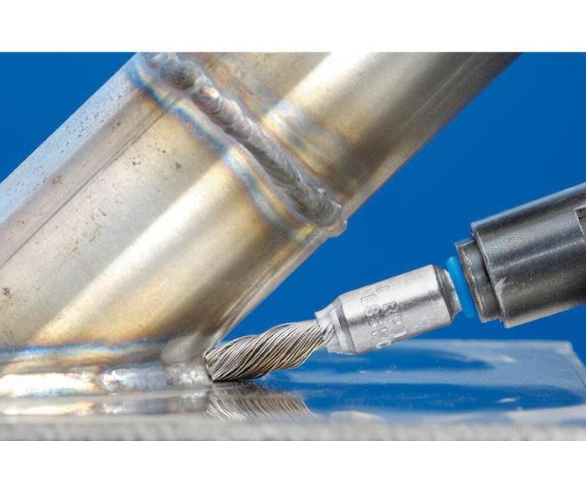 flexible Einzelzopfbürste mit kunststoffüberzogenem Bürstenkörper · sehr gute Korrosionsbeständigkeit bei optimaler Standzeit · INOX-Besatz blau für den Einsatz auf allen Edelstählen (INOX) · wie z. B. V4A. Edelstahldraht (INOX) hält Temperaturen bis 450 °C stand · Schaft-Ø 6 mm