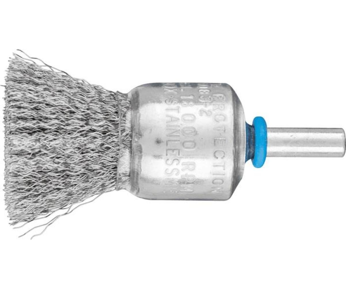 für leichte Bürstarbeiten wie Entgraten, Reinigen und Entrosten · Pinselbürste mit kunststoffüberzogenem Bürstenkörper · sehr gute Korrosionsbeständigkeit bei optimaler Standzeit · INOX-Besatz blau für den Einsatz auf allen Edelstählen (INOX), wie z. B. V4A · Schaft-Ø 6 mm